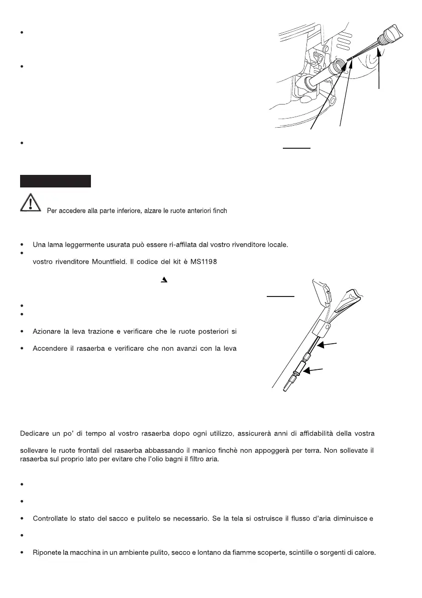 Spegnere il motore e scollegare il cavo candela prima di lavorare sulla macchina.