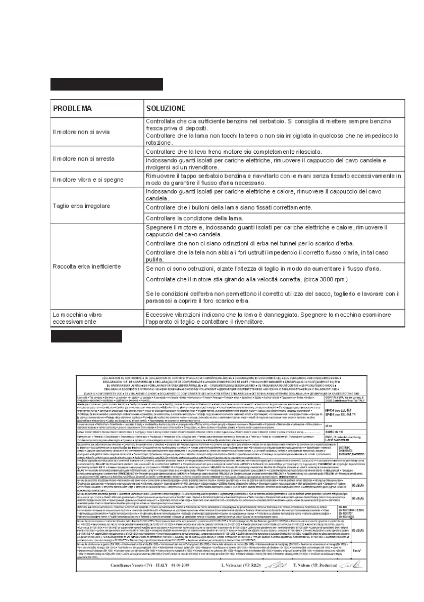 Il certicato di conformità e allegato alla documentazione inclusa con il rasaerba, mostriamo qui un esempio.