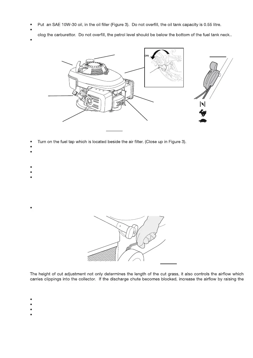 height of cut. To prevent blockages when cutting long, thick grass, set the adjustment to the highest setting and cut