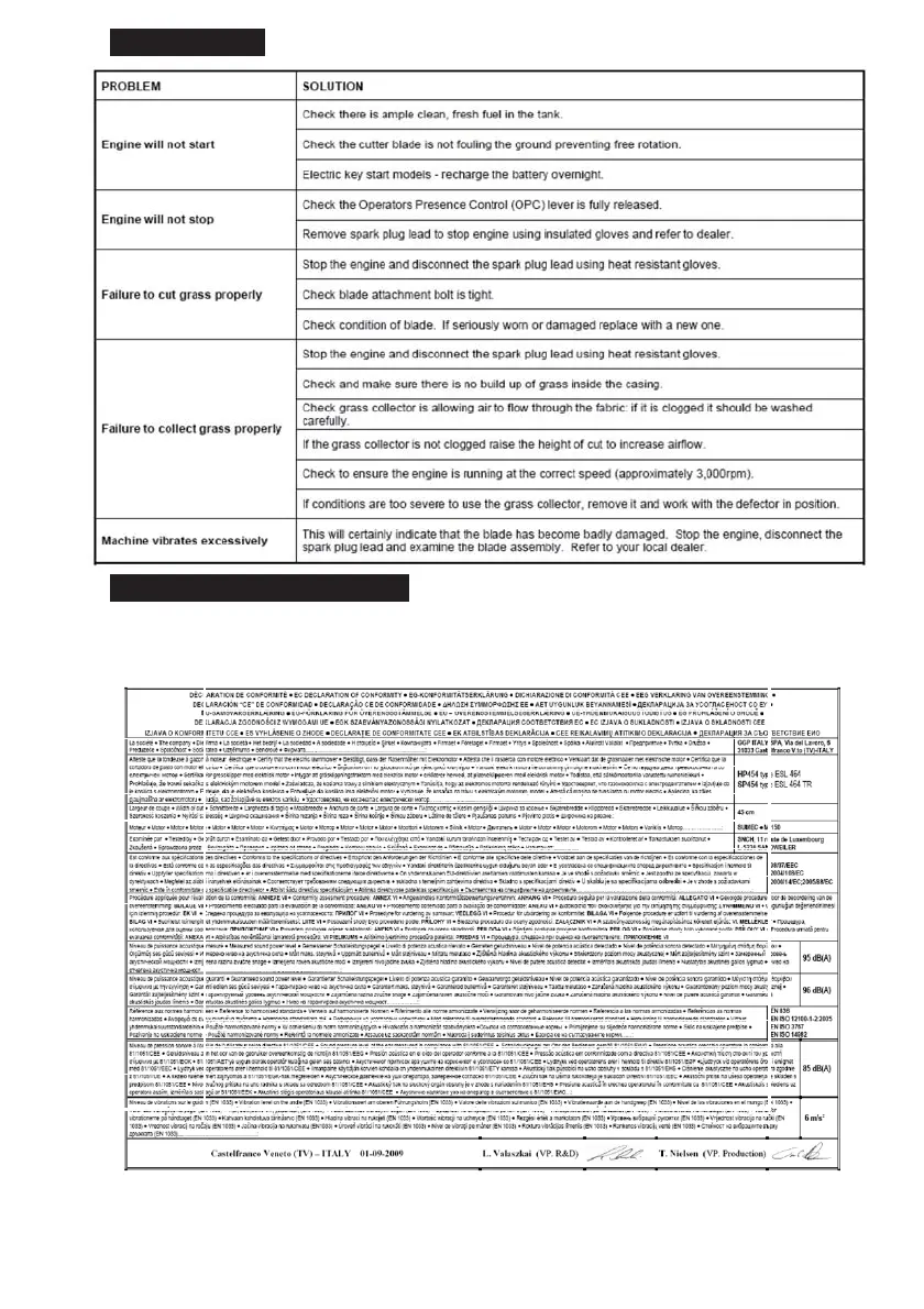 Che ck the c utte r blade is n ot fo uling the g round pre ve nting fre e ro tatio n.