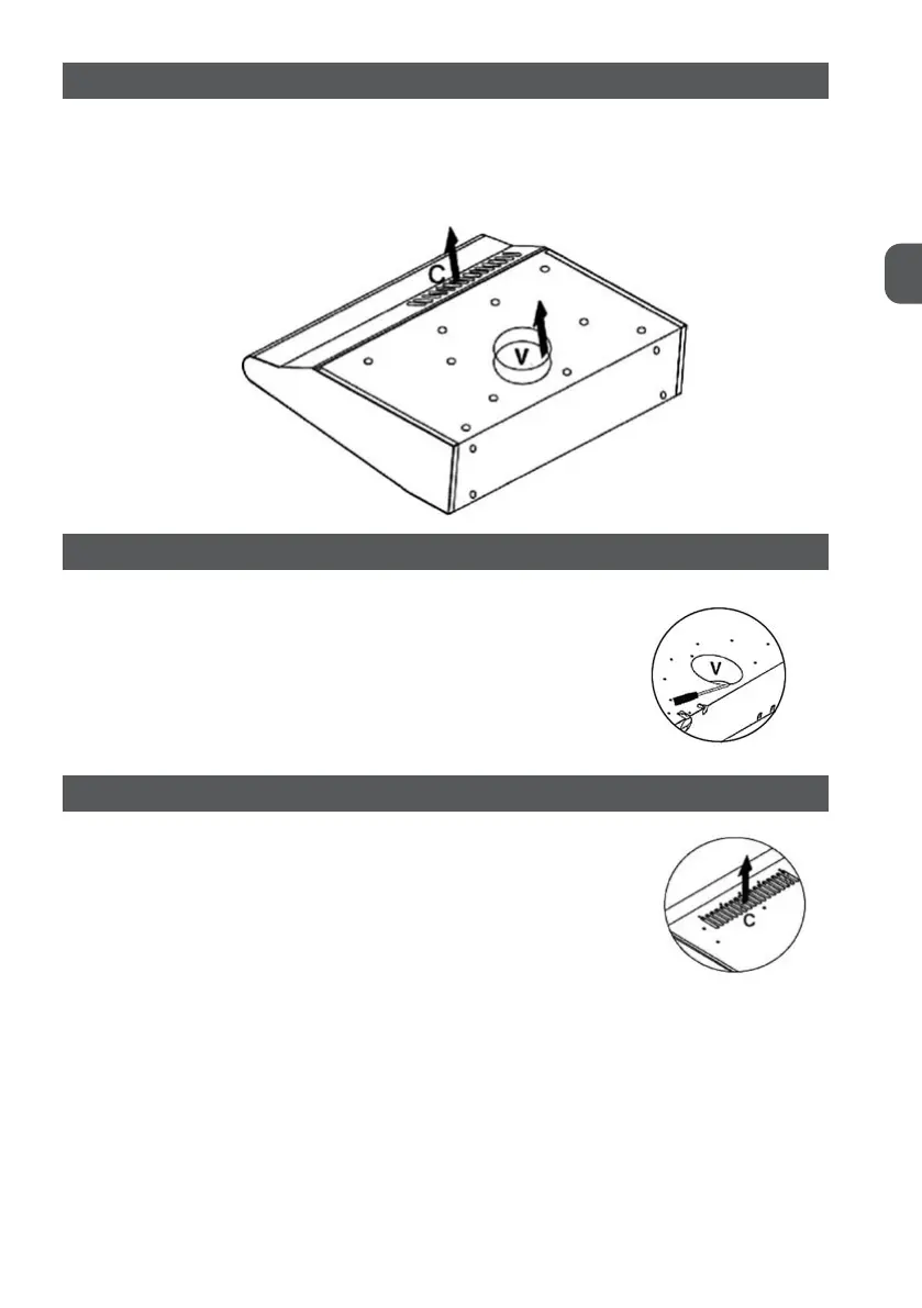 V – Maskownica wylotu powietrza do usunięcia wtrybie wyciąg
