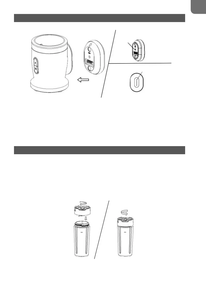 1. Gire la botella de la licuadora (7) de manera que el orificio para enroscar la base quede en la