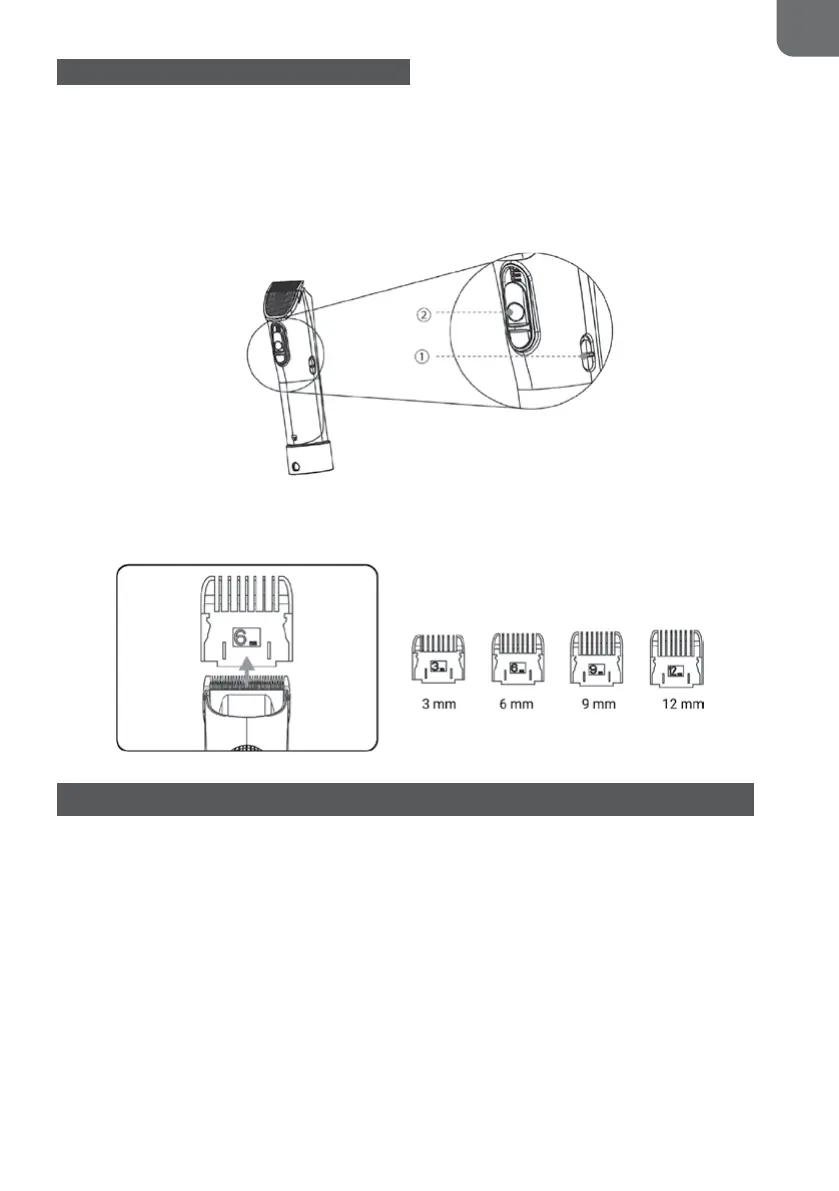 1. Włącz strzyżarkę suwakiem włącznik/wyłącznik (20a) z boku urządzenia.