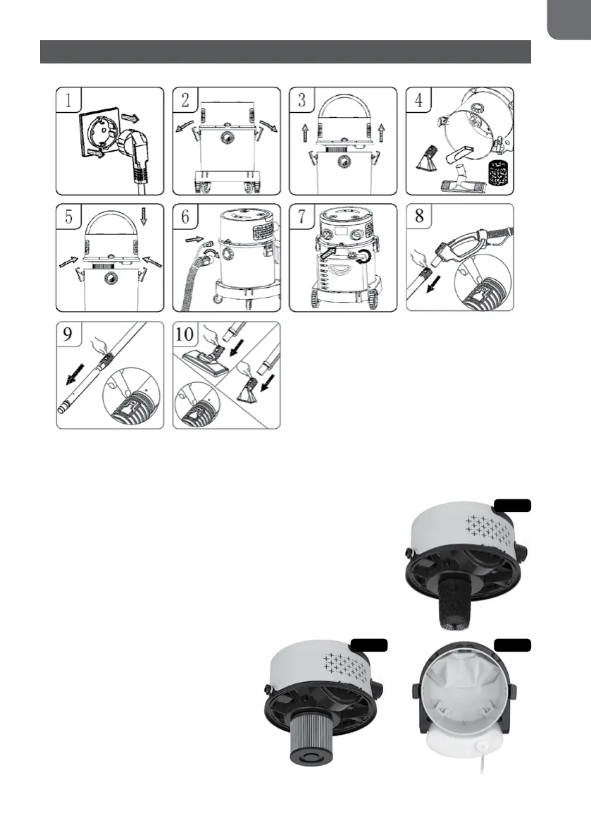 ASSEMBLING AND CONNECTING OF THE VACUUM CLEANER