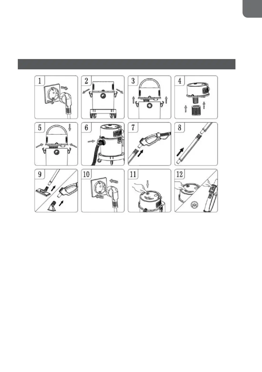 9. Connect the oor and carpet brush or crevice aachment to the aluminium tube (Fig. 9).