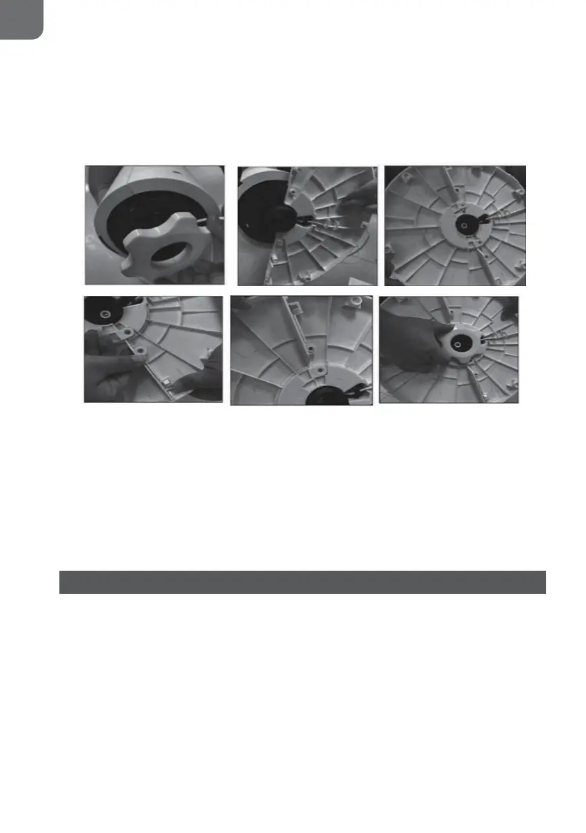 5. Następnie zamontuj drugą połowę podstawy (4) wokół wału i na pierwszej połowie podstawy,