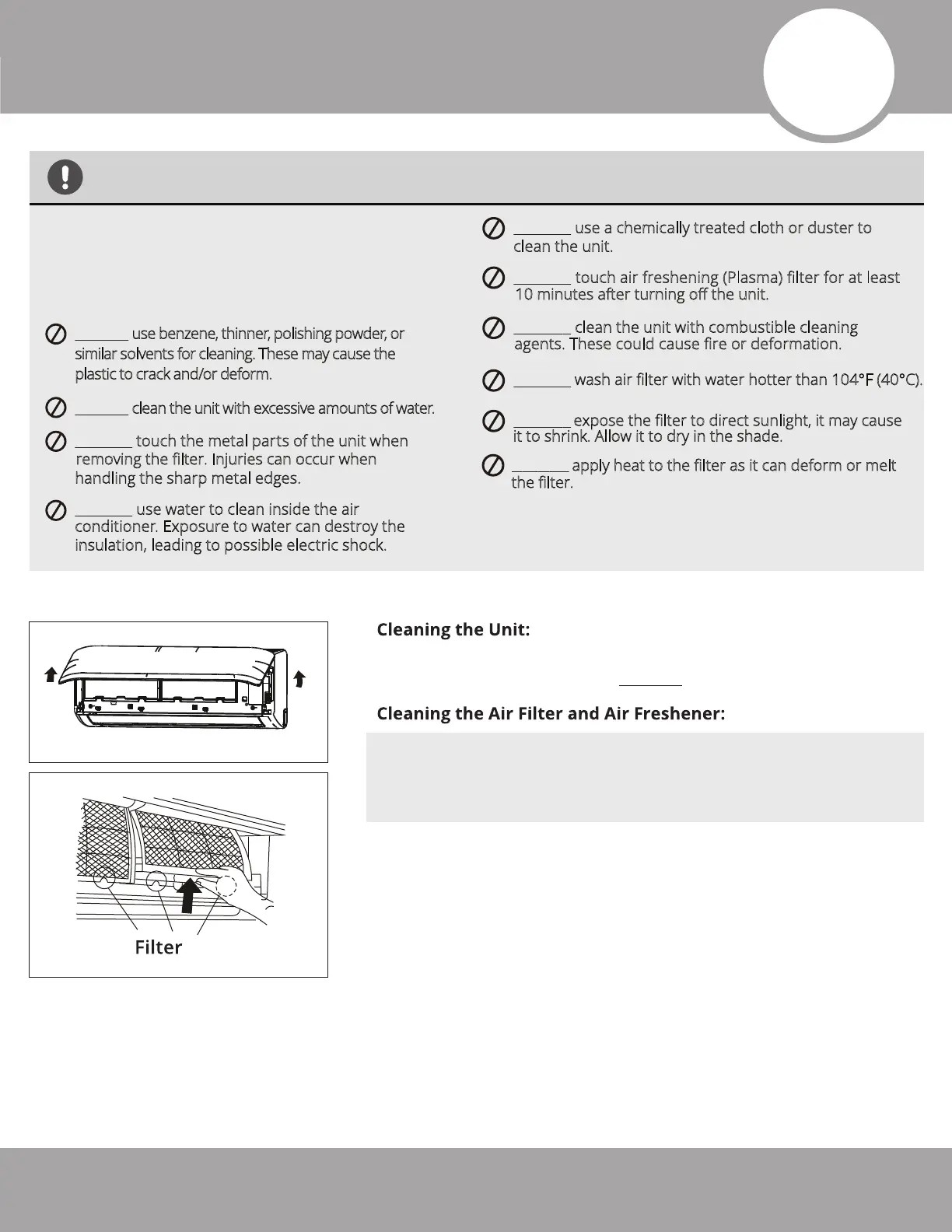 a cloth damp with warm water. DO NOT use bleach or abrasives.