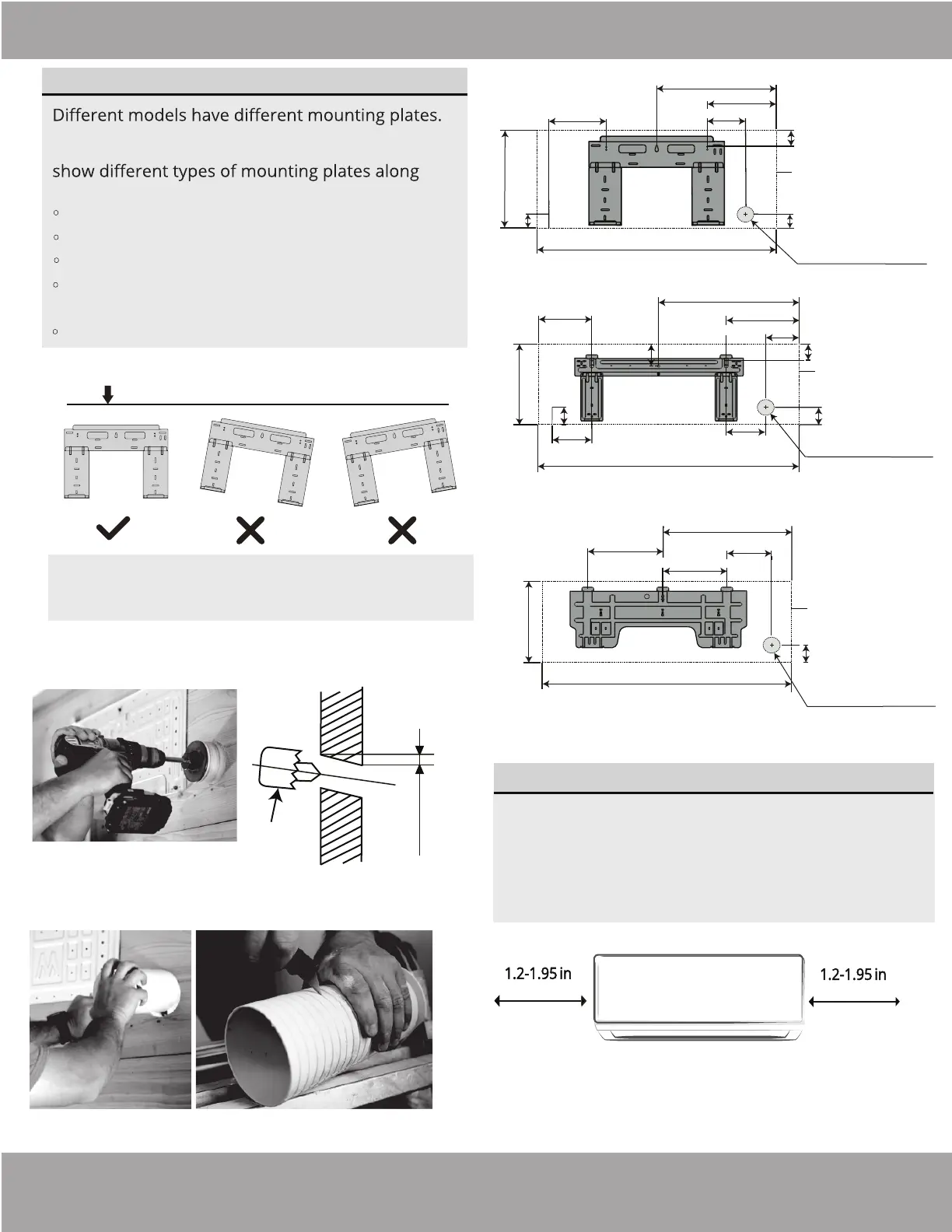 mount the indoor unit, the diagrams to the right