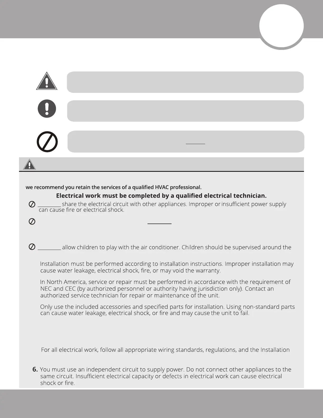 installation location cannot support the weight of the unit, it could fall and cause serious injury