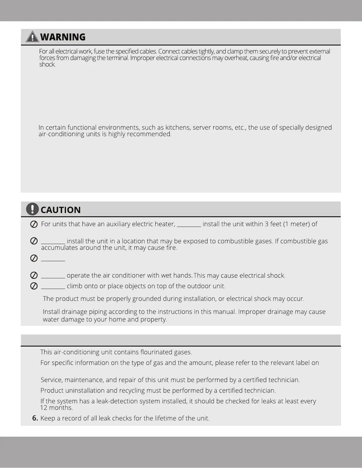 operate your air conditioner in a room where it could be exposed to water, such as a bathroom or laundry