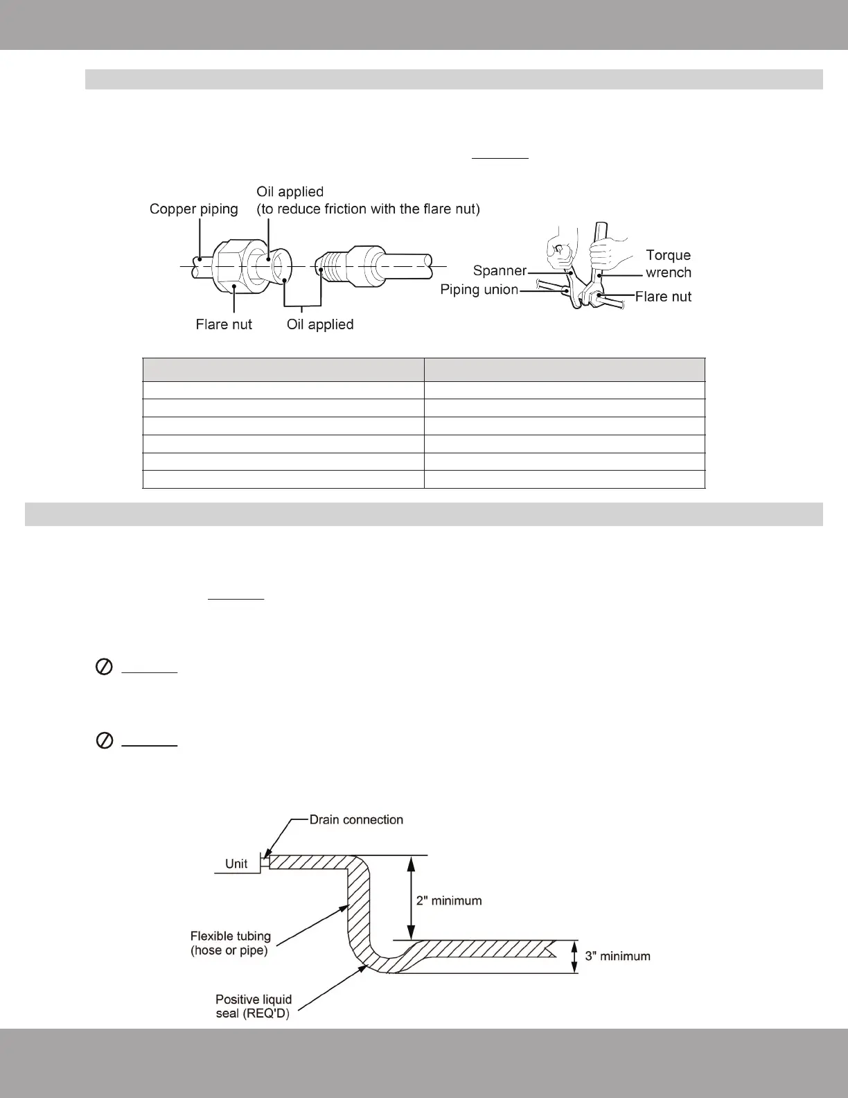 Pipe diameter (inch) Tightening torque: ft-lbs (N·m)