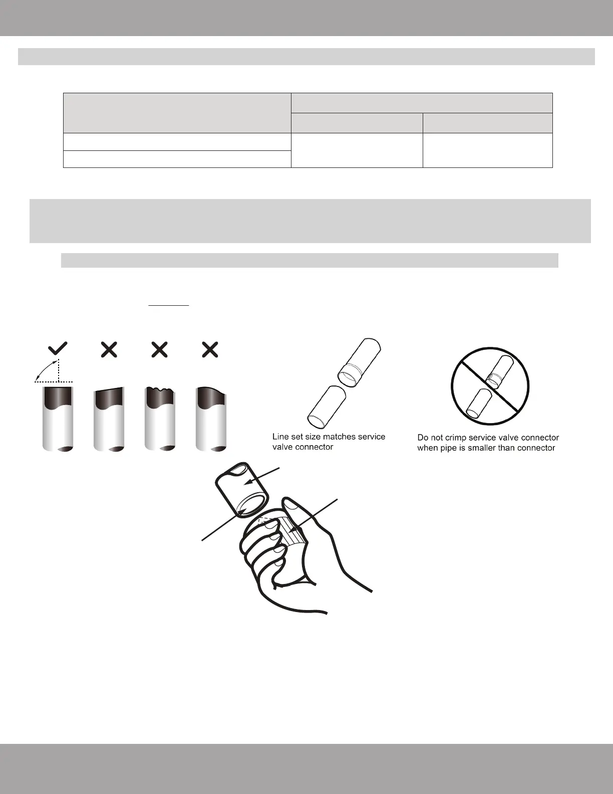 (use a reamer), cleaned, and at a perfect 90° angle. Make sure the line set size matches the service