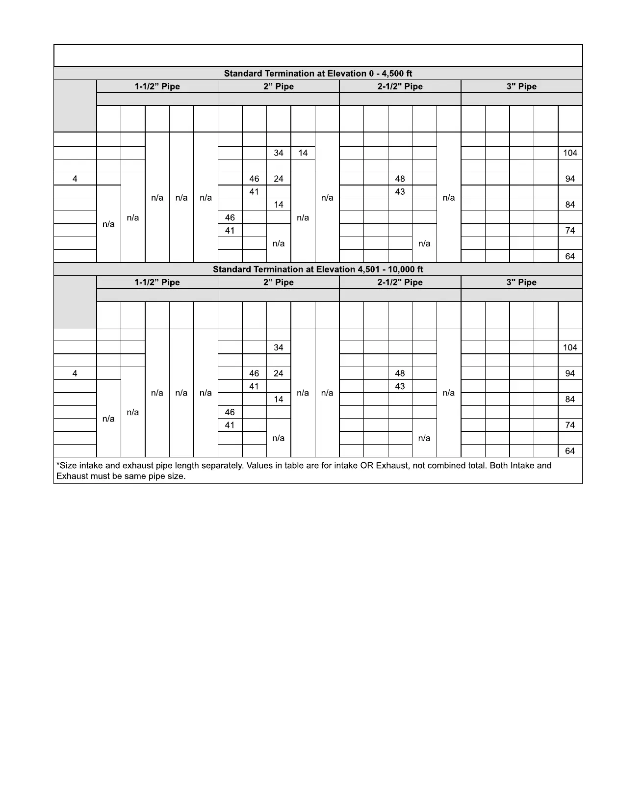 MG*M95SE*XA Maximum Allowable Intake or Exhaust Vent Length in Feet