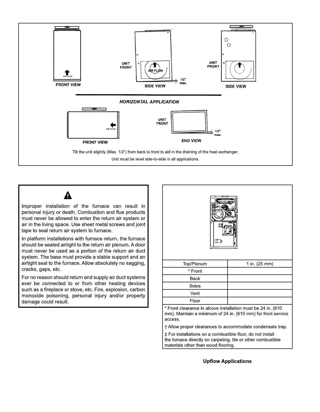 *Front clearance in alcove installation must be 24 in. (610 mm).