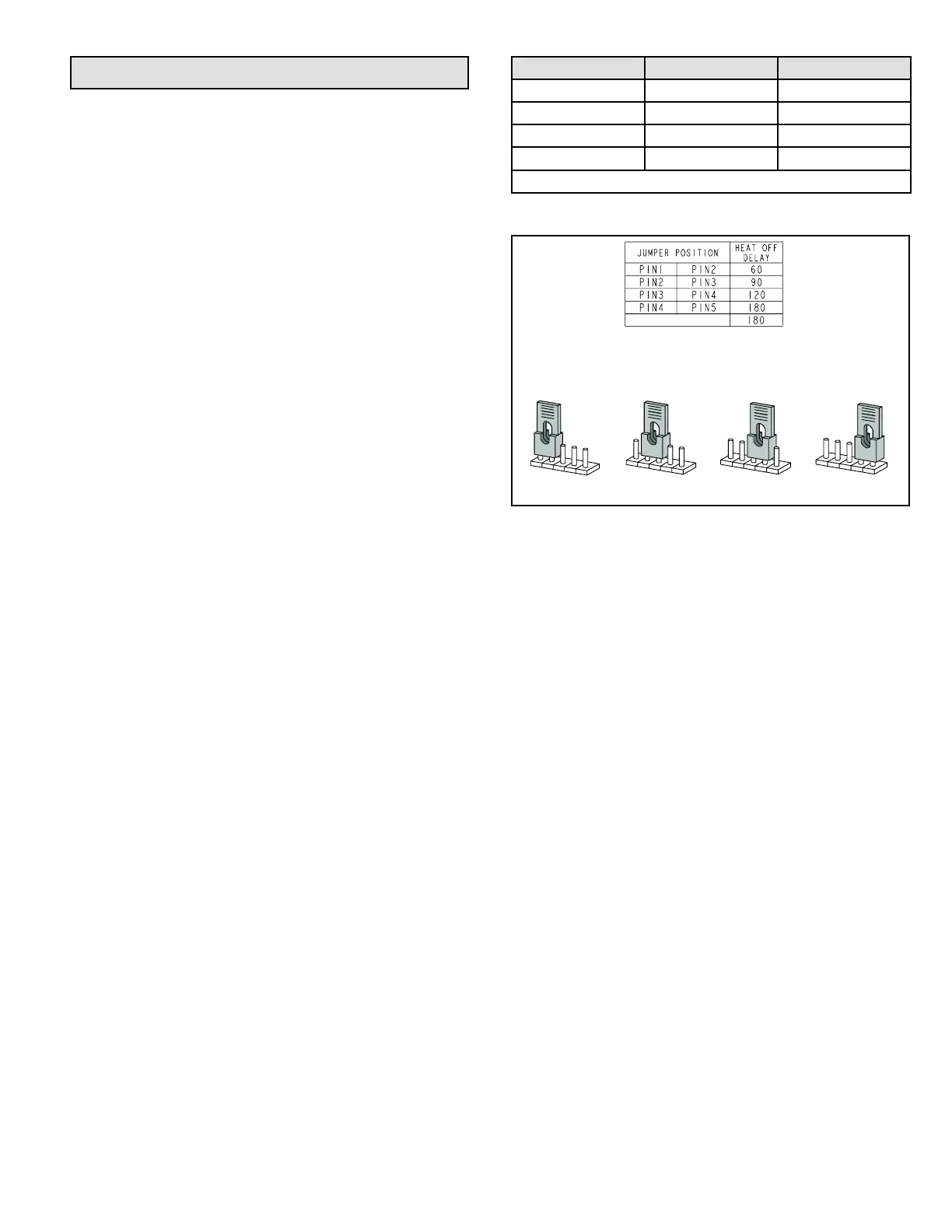 To adjust fan-off timing, reposition jumper across pins to