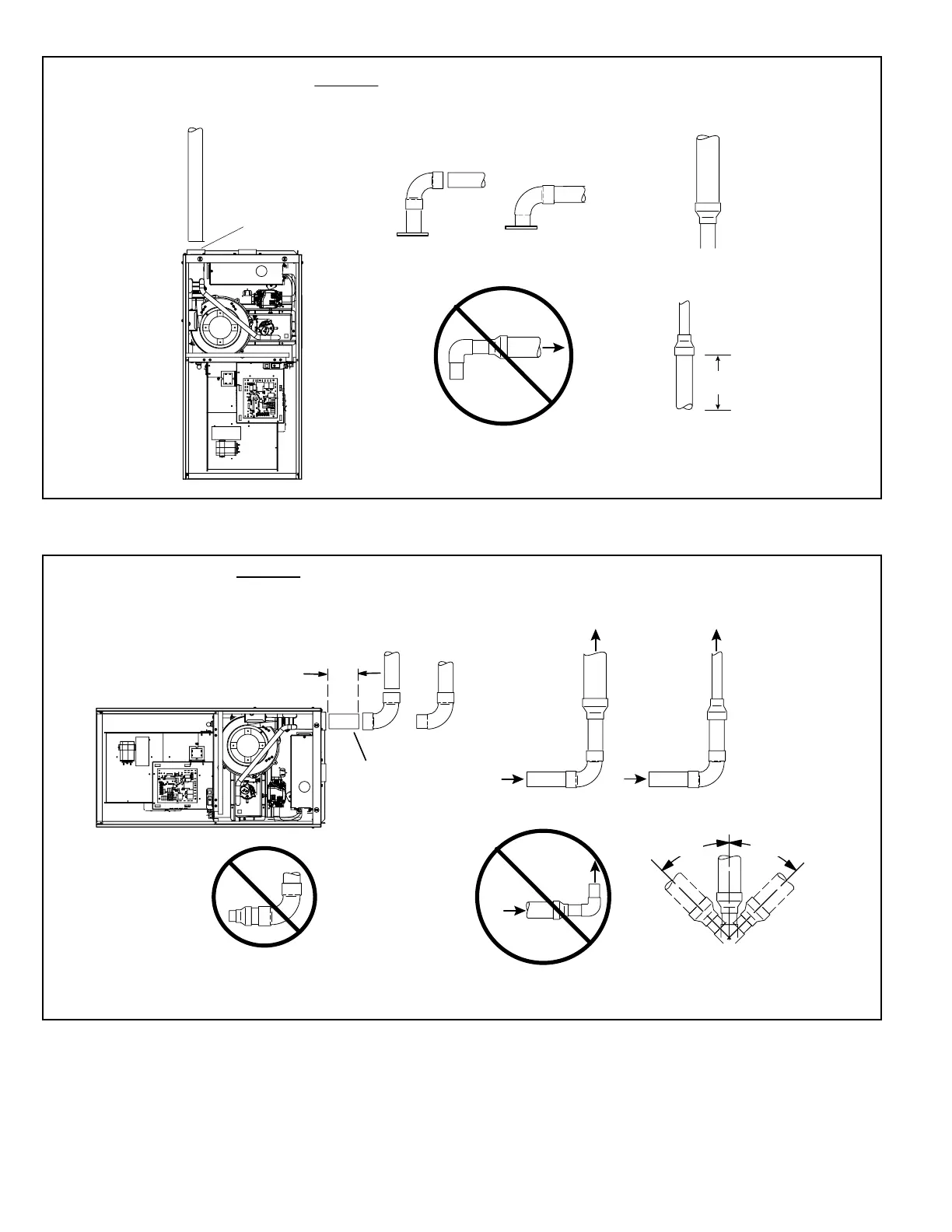 TYPICAL EXHAUST PIPE CONNECTIONS IN UPFLOW DIRECT OR