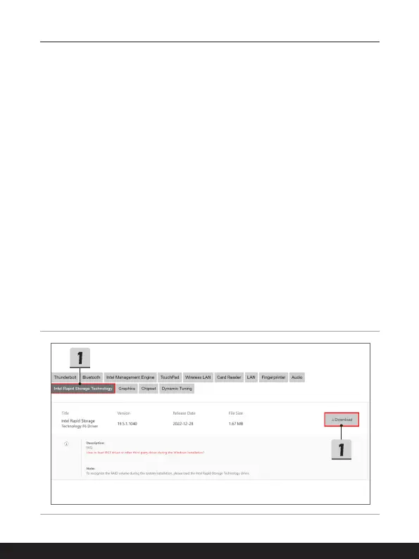 1. MSI 웹 사이트의 제품 지원 페이지에서 Intel Rapid Storage Technology F6