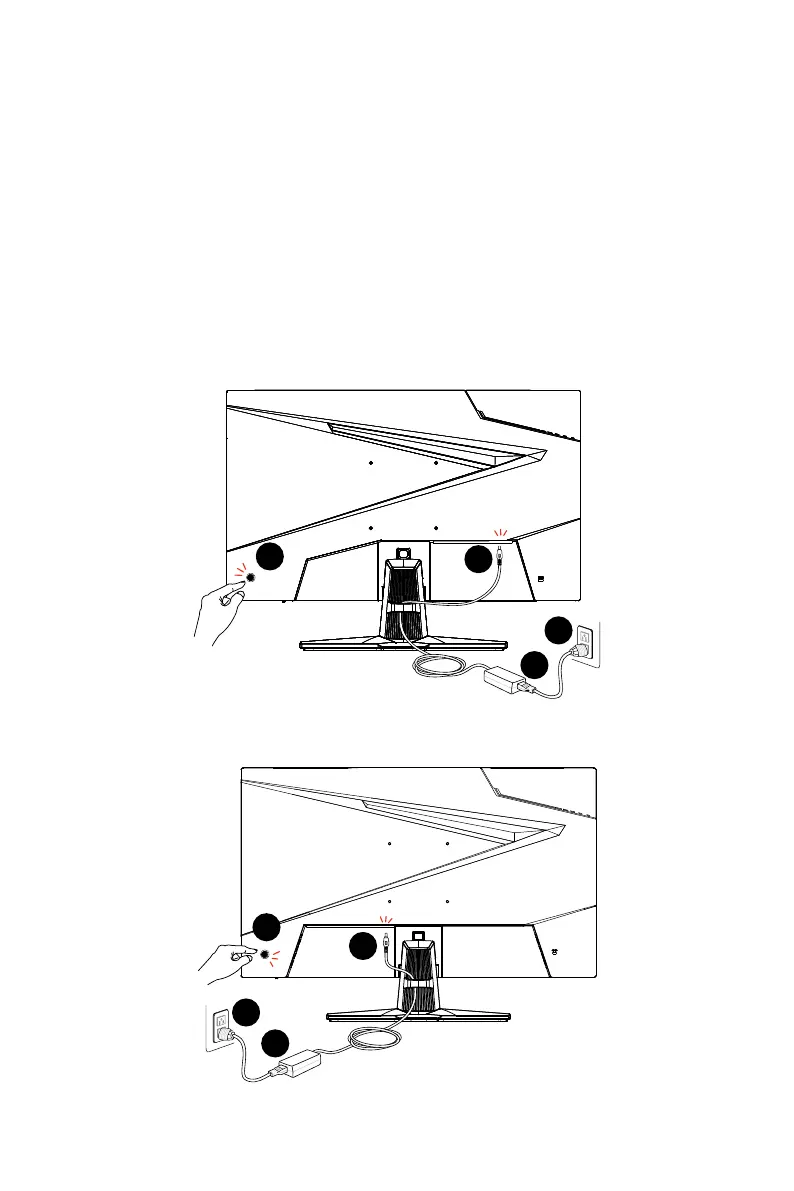 4. Sluit de externe voeding aan op de voedingsaansluiting van de monitor.