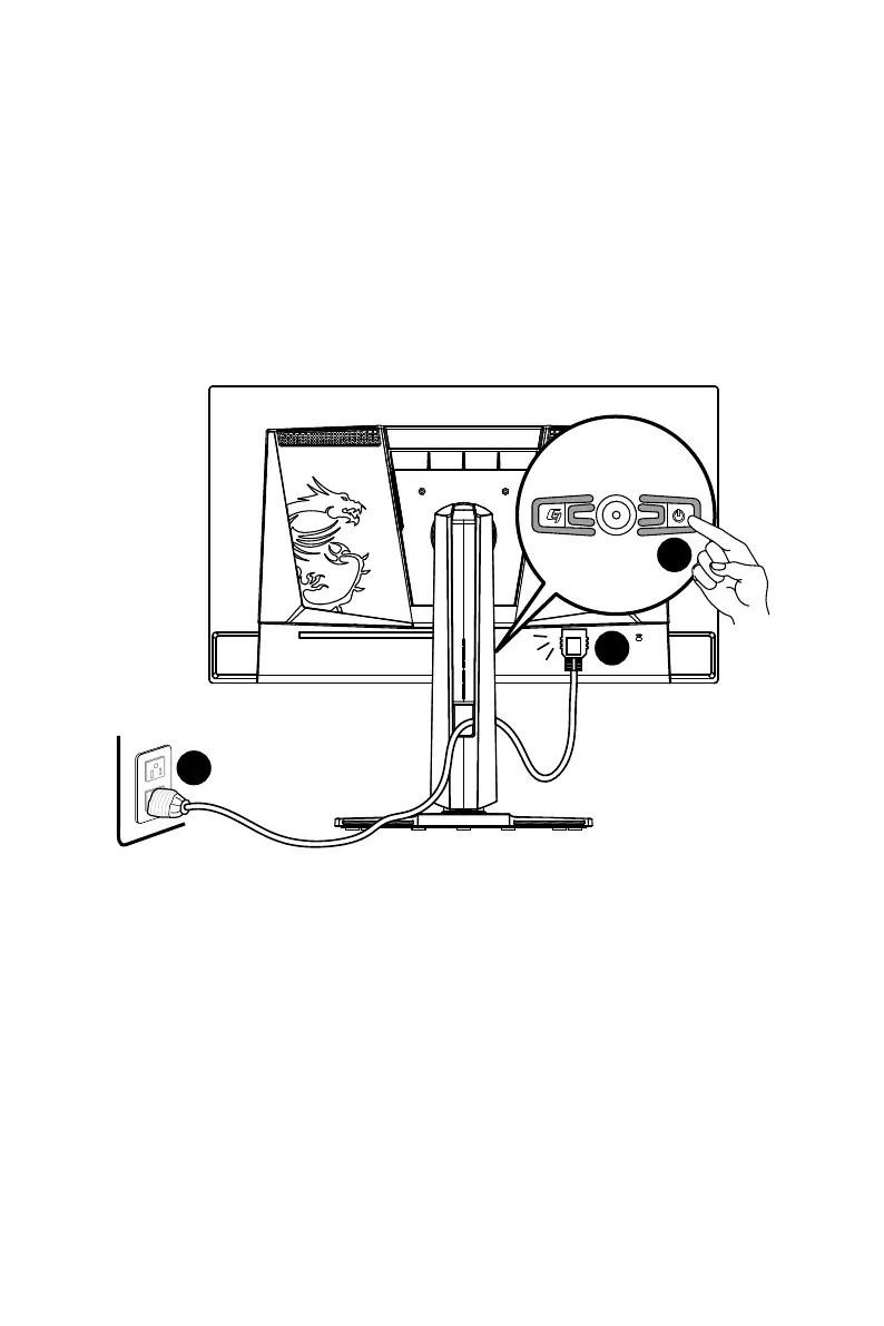 3. Sluit het stroomsnoer aan op de voedingsaansluiting van de monitor. (Afbeelding