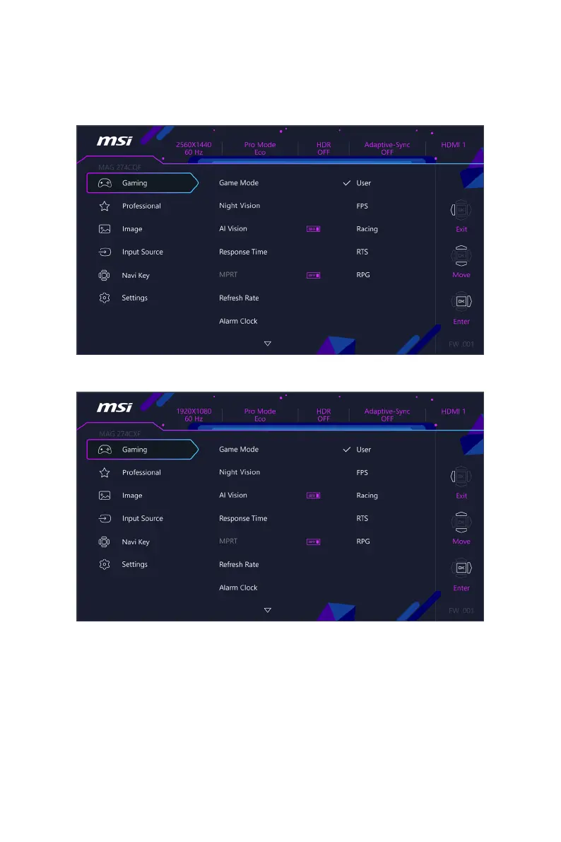 Bekijk gratis de handleiding van MSI MAG 274CQF, stel vragen en lees de antwoorden op veelvoorkomende problemen, of gebruik onze assistent om sneller informatie in de handleiding te vinden of uitleg te krijgen over specifieke functies.