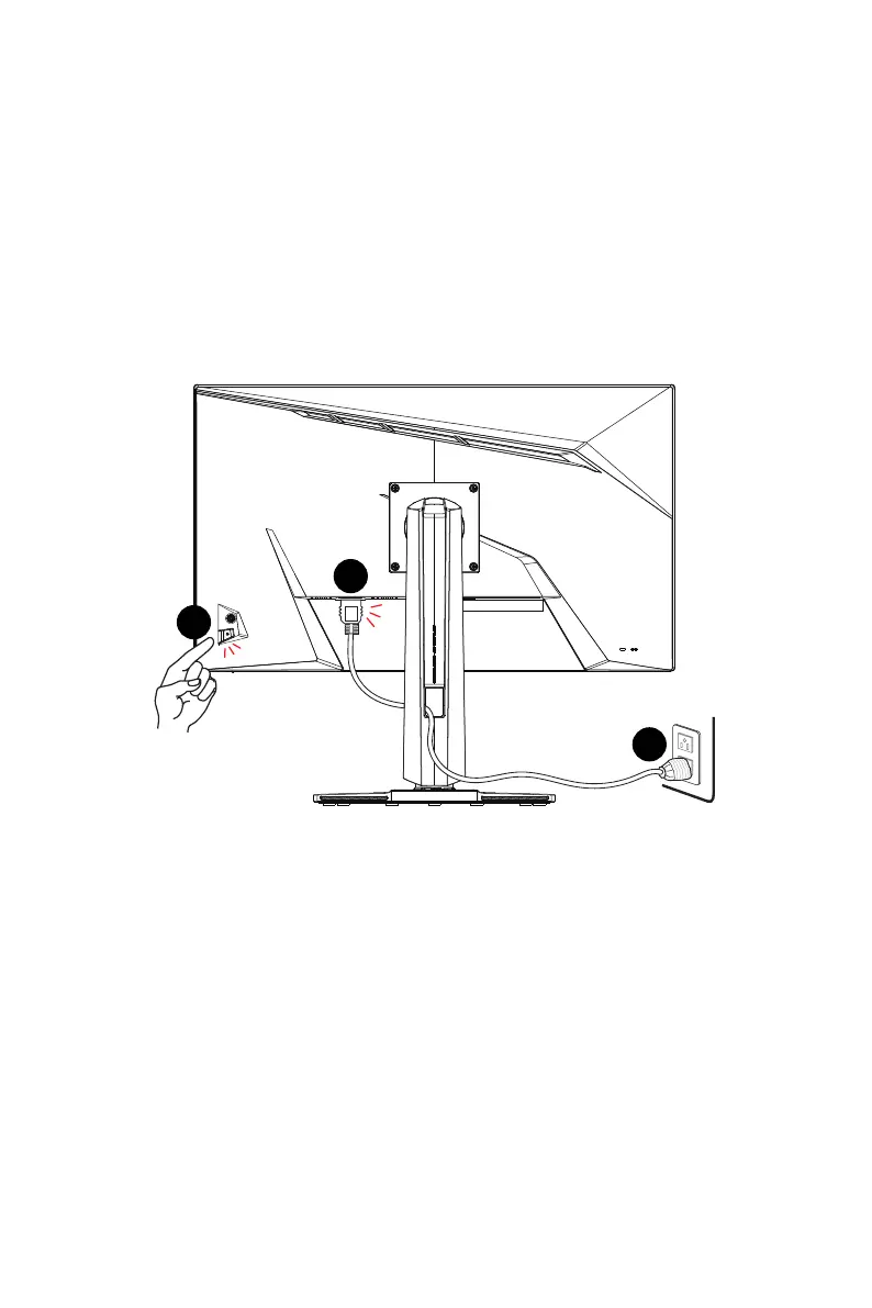 3. Sluit het stroomsnoer aan op de voedingsaansluiting van de monitor. (Afbeelding