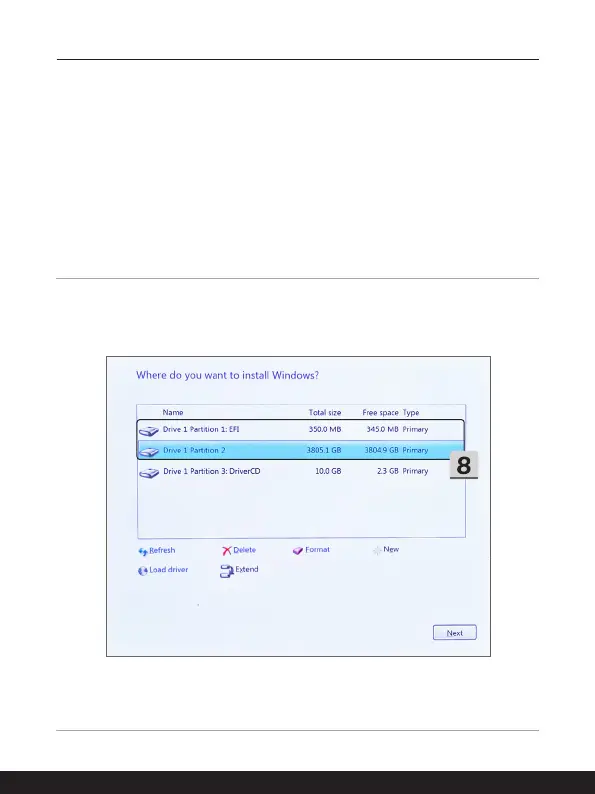 9. Nie formatuj, nie usuwaj ani nie modyfikuj opcji [Drive 1 Partition 1: DriverCD] (Napęd