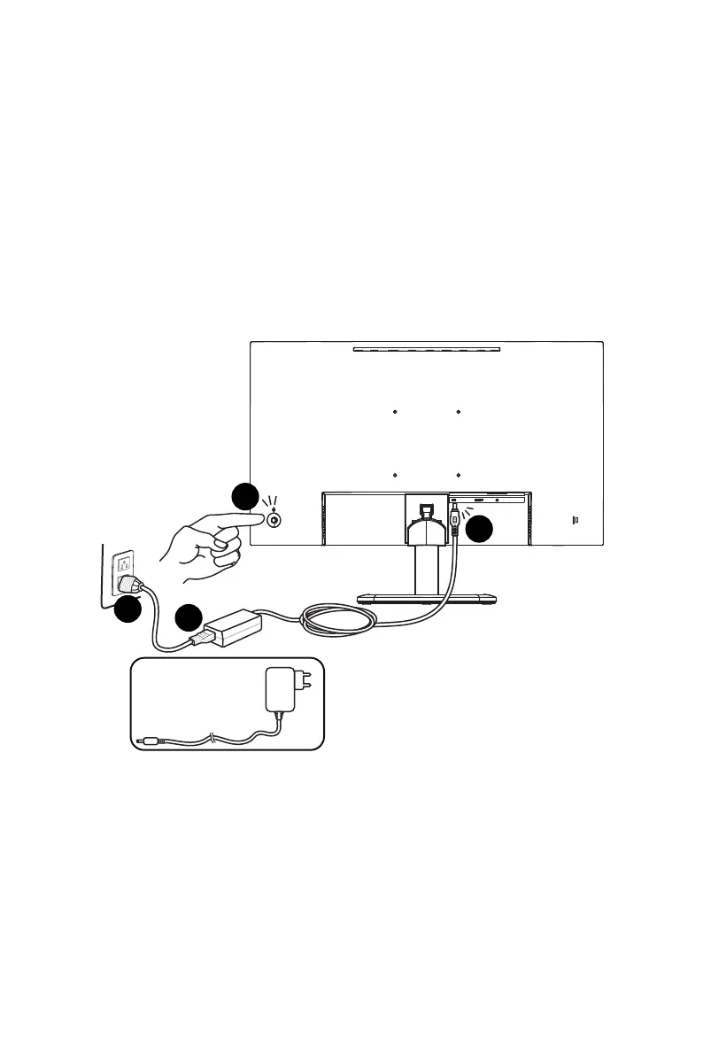 4. Sluit de externe voeding aan op de voedingsaansluiting van de monitor.