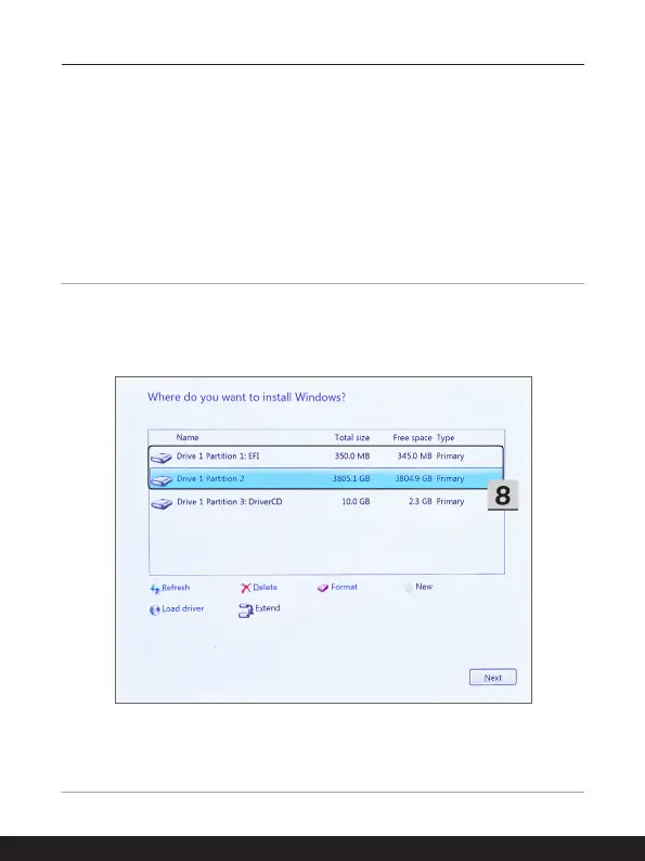 8. Hapus [Drive 1 Partition 1: EFI] (Drive 1 Partisi 1:EFI) dan [Drive 1 Partition 2] (Drive