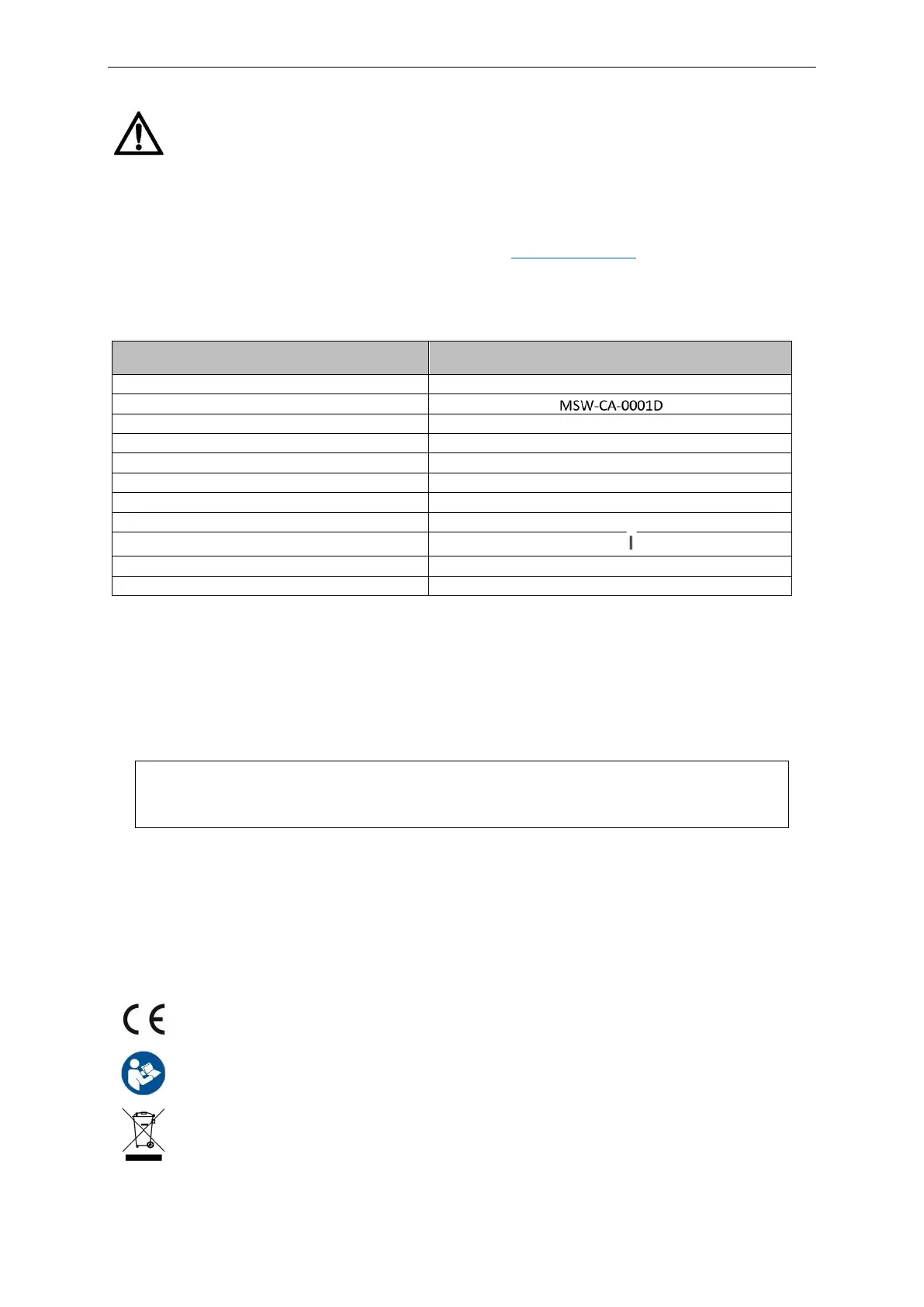 Bekijk gratis de handleiding van MSW -CA-0001D, stel vragen en lees de antwoorden op veelvoorkomende problemen, of gebruik onze assistent om sneller informatie in de handleiding te vinden of uitleg te krijgen over specifieke functies.