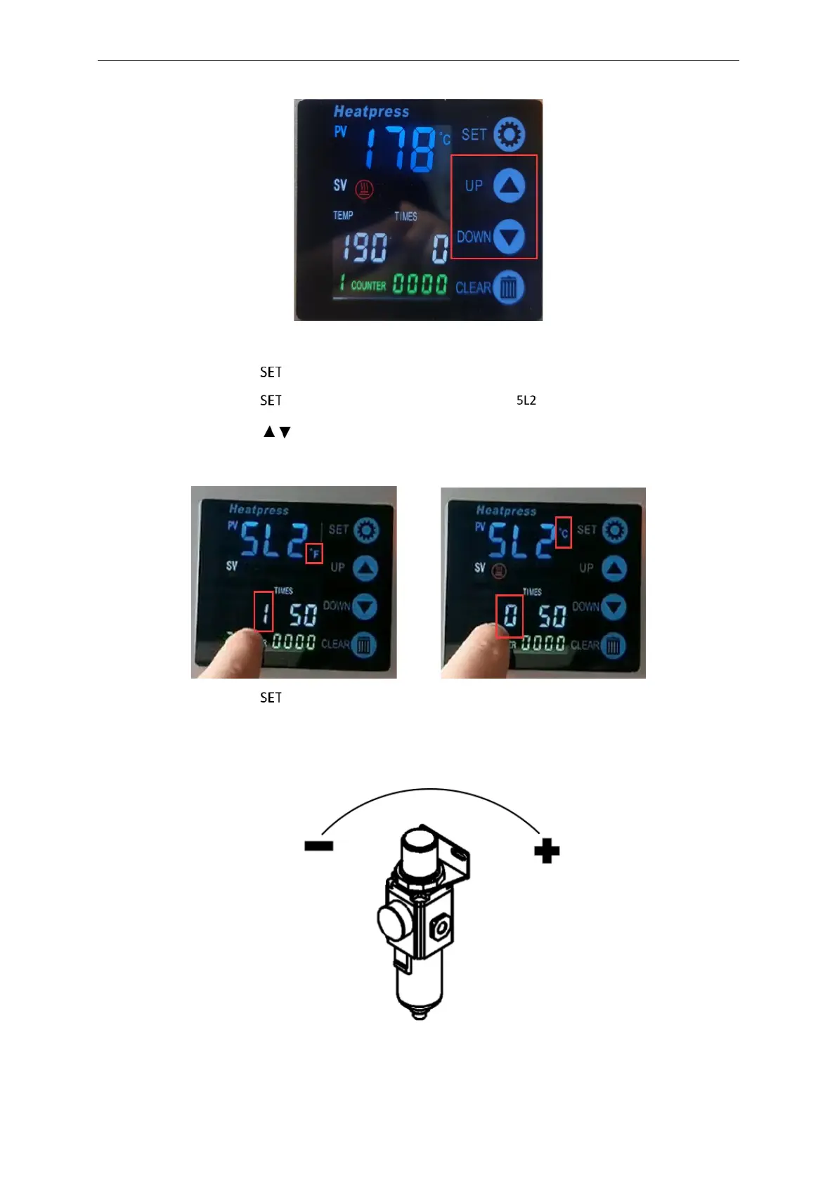 Juster trykket gennem luftkildeprocessoren, så det øges med uret og mindskes mod uret.