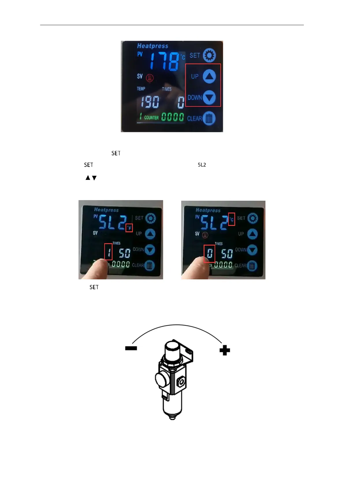 2. Hit the “ ” button to adjust the display until it shows “ ”.