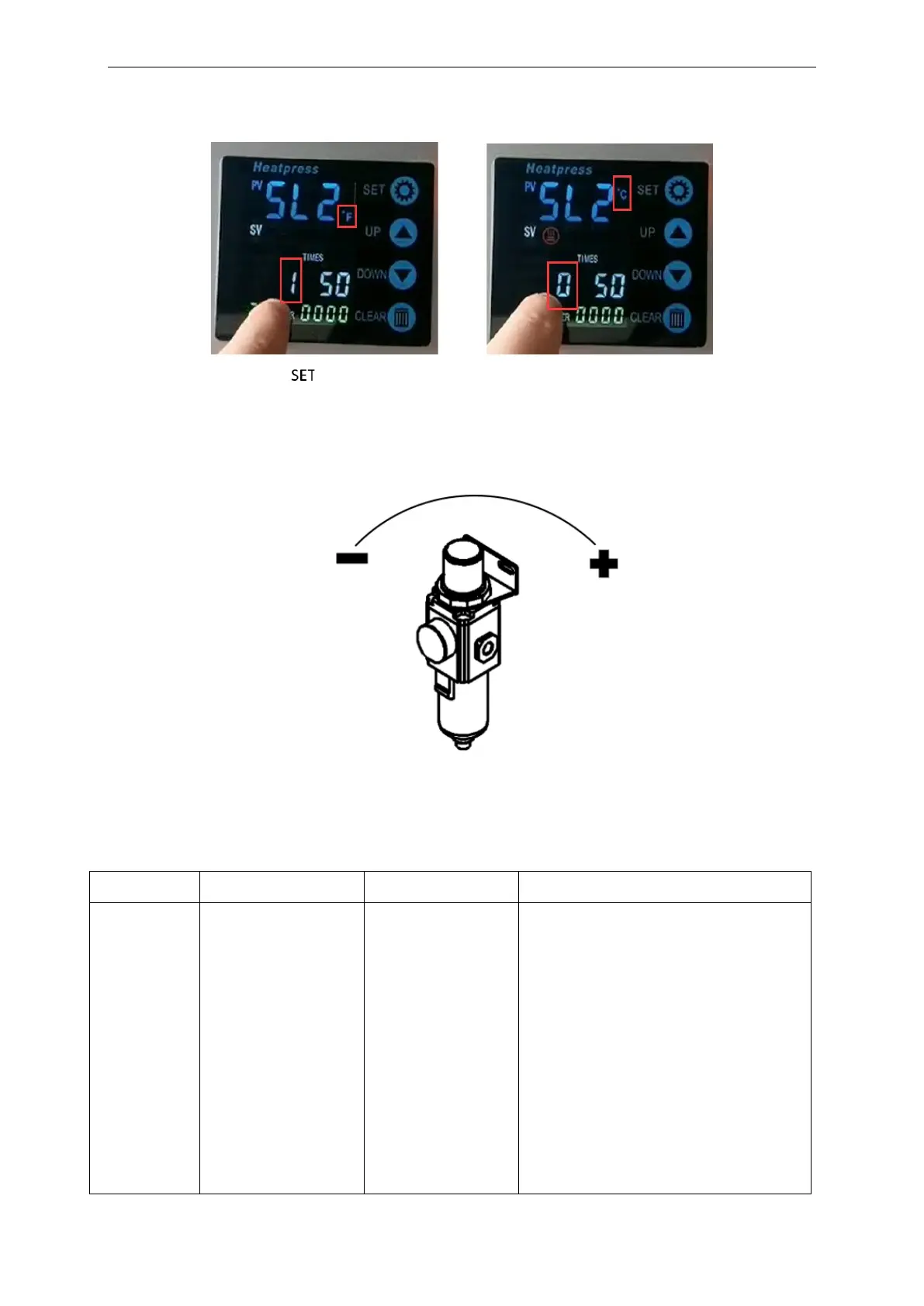 Upravte tlak přes procesor zdroje vzduchu tak, aby se zvyšoval po směru hodinových ručiček a snižoval