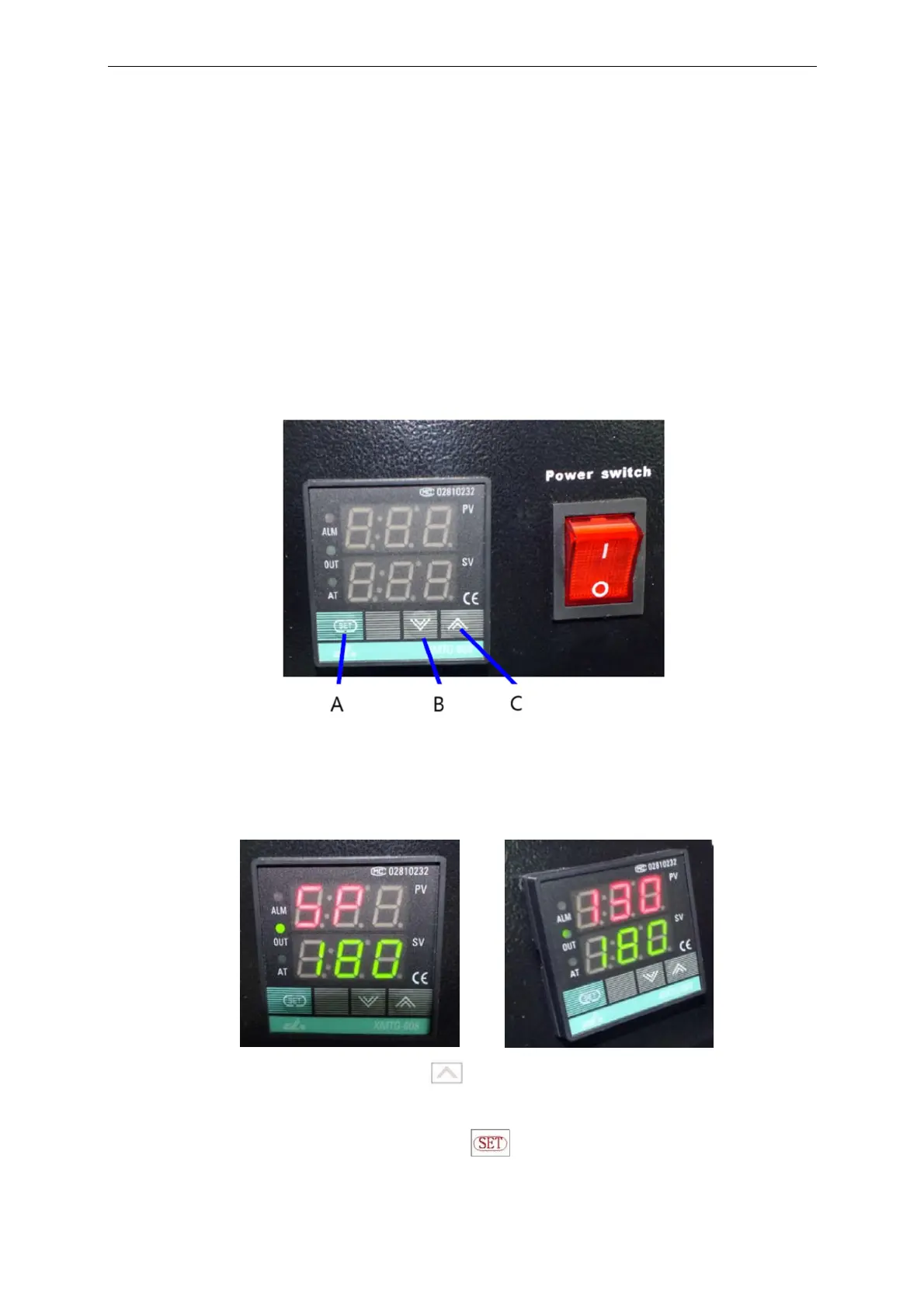 dann mit der Einstellung der moderaten Temperatur, indem Sie die Tasten zum Erhöhen und Senken
