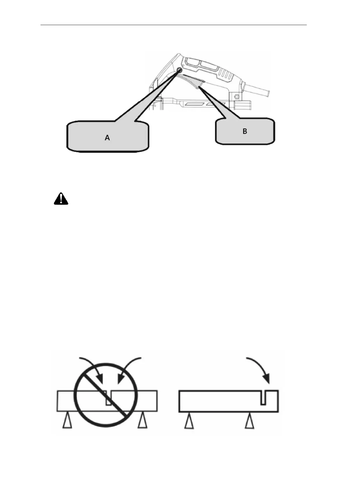 Liian suuri voima terän kohdistamiseksi merkittyyn viivaan voi ylikuormittaa ja vahingoittaa moottoria,