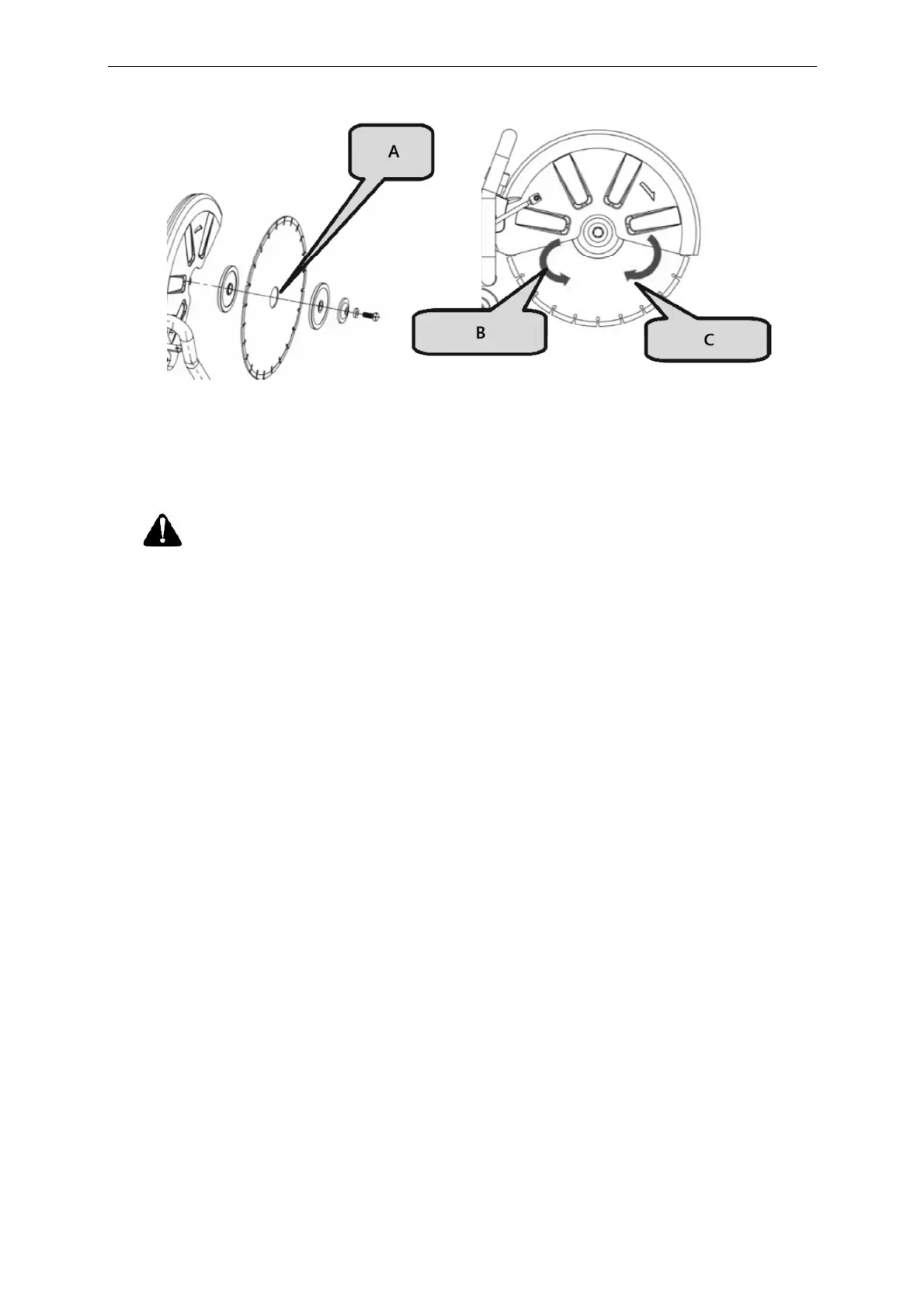 Pilens riktning på sågbladet måste överensstämma med rotationsriktningen som anges på