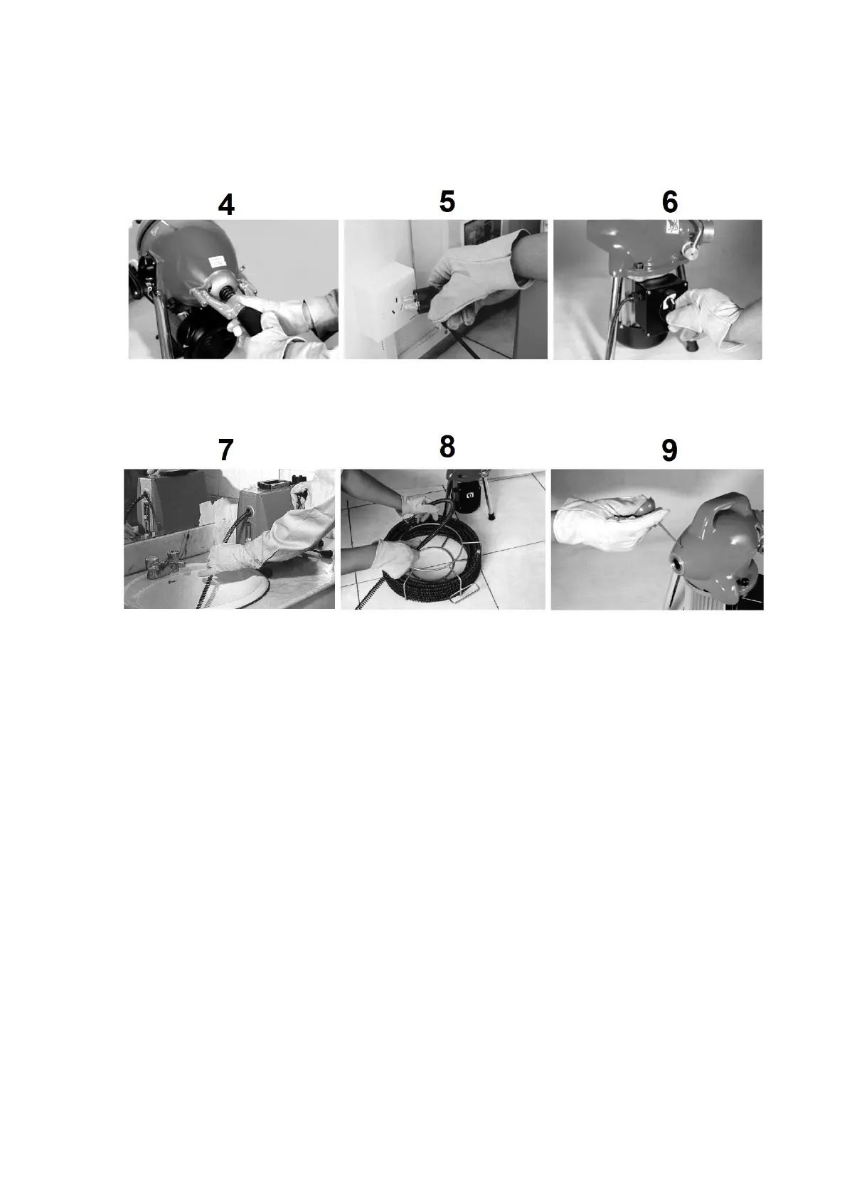 7 – utrzymać 20 – 30 cm spirali pomiędzy maszyną a wlotem rury; przełączyć przełącznik kierunku obrotów