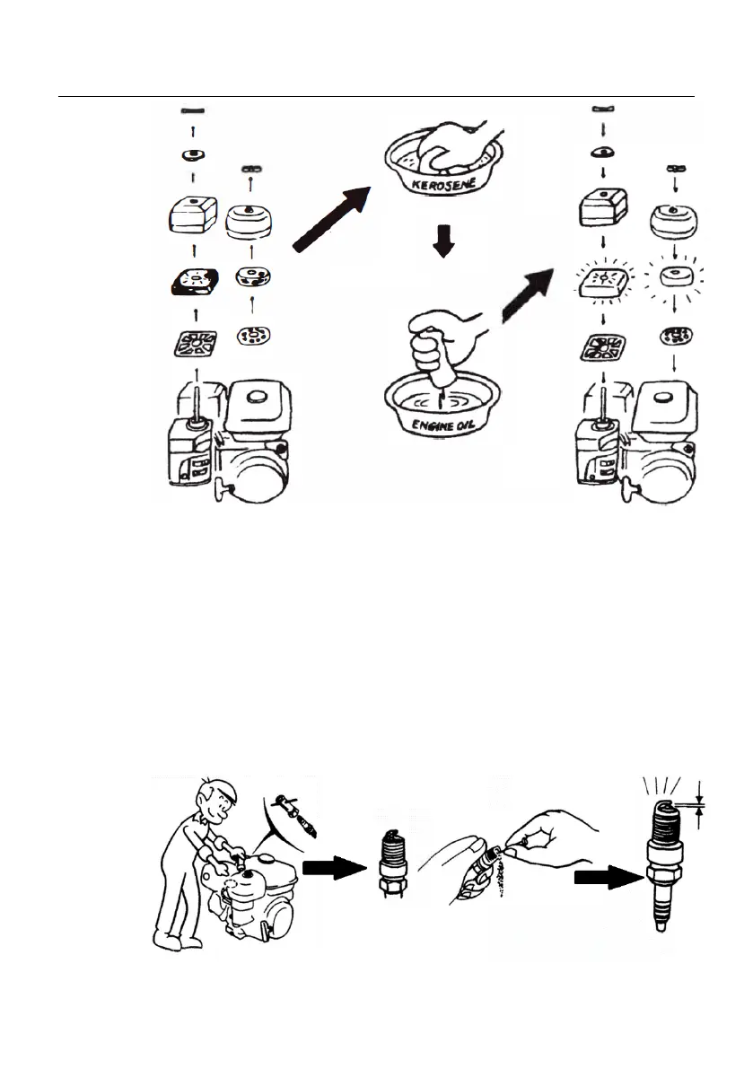 k) Tjek jævnligt tændrørets tilstand - rengør det, hvis det er snavset, og