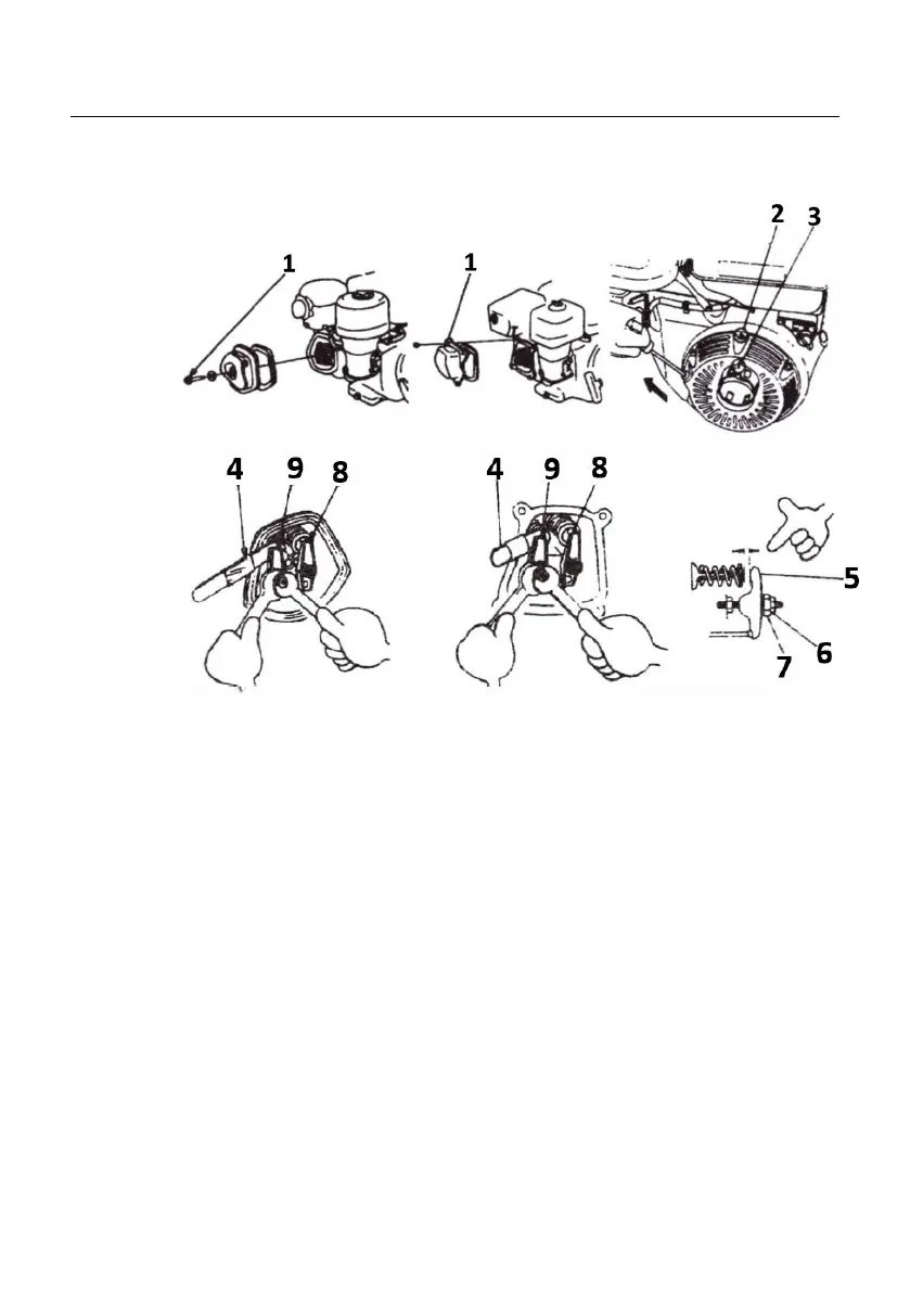 nkelte ventilstang (8 eller 9). Lås stiften (7) på skubbehåndtaget