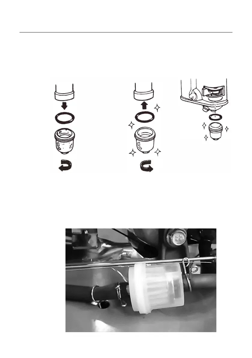 of the filter. Remember the correct direction of the filter (fuel flow)