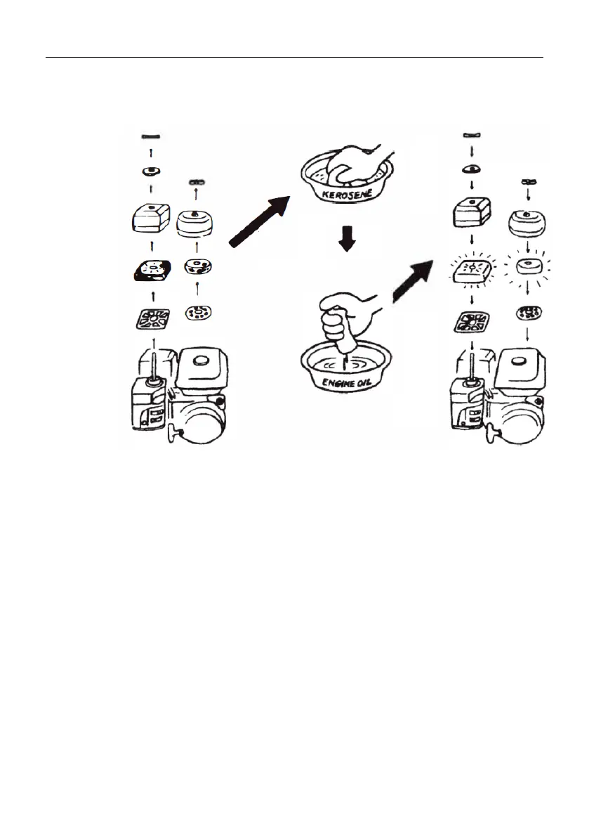 Spülen Sie den Filter in gereinigtem Kerosin oder Benzin aus. Der