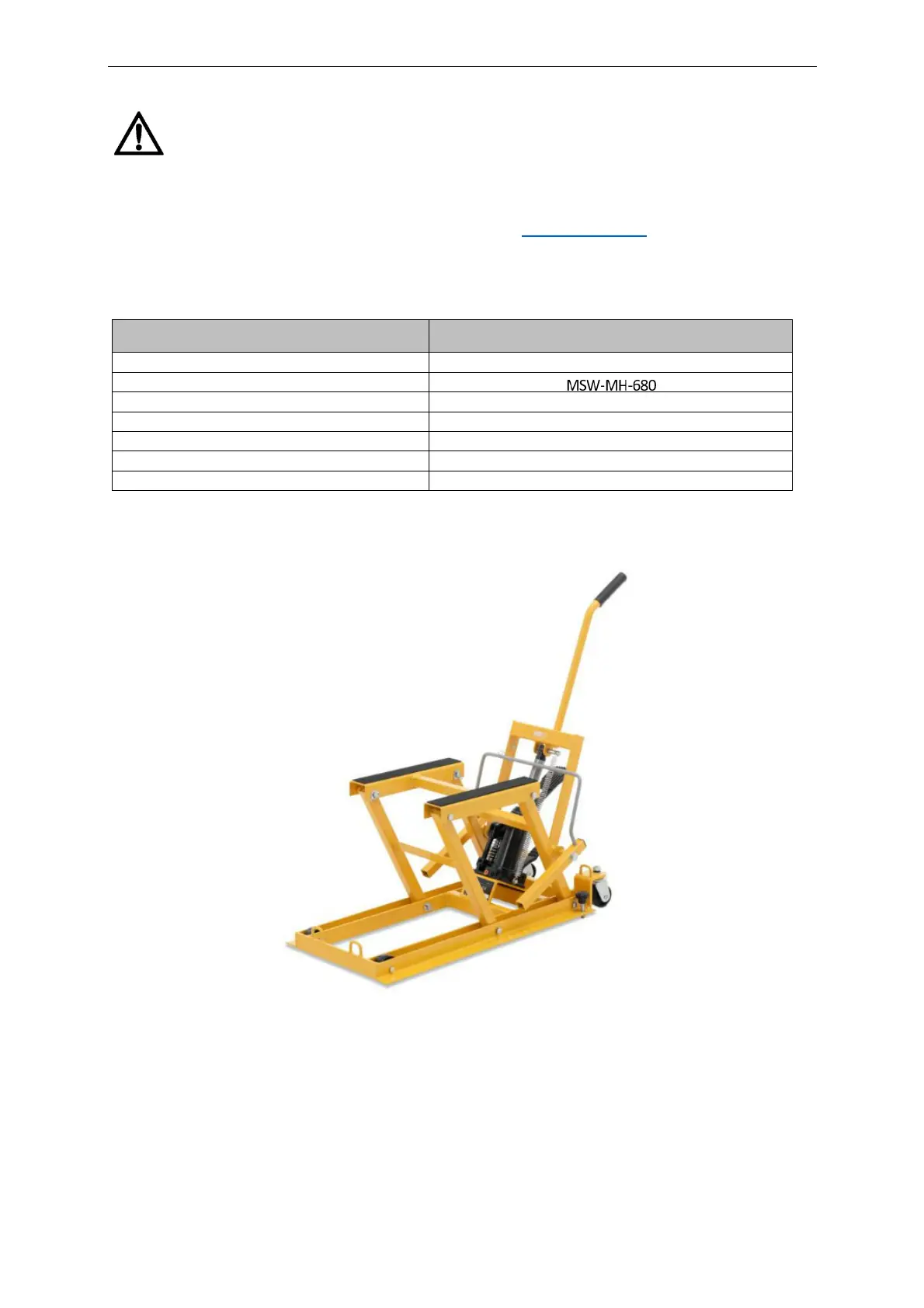 Produkt je určen pro zvedání a podpírání motocyklů, čtyřkolek a čtyřkolek.