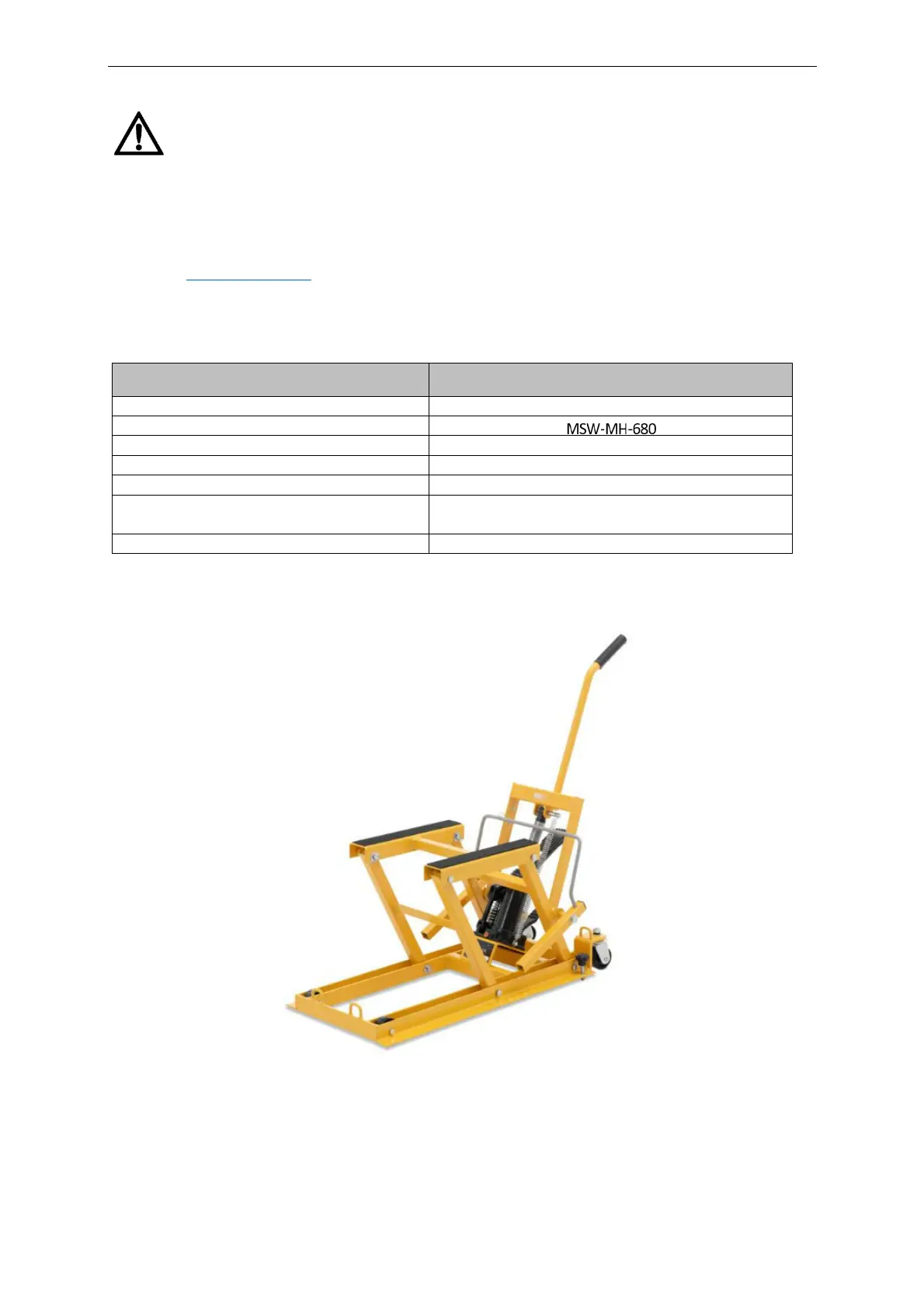 Продуктът е предназначен за повдигане и поддържане на мотоциклети, ATV и четириколки.