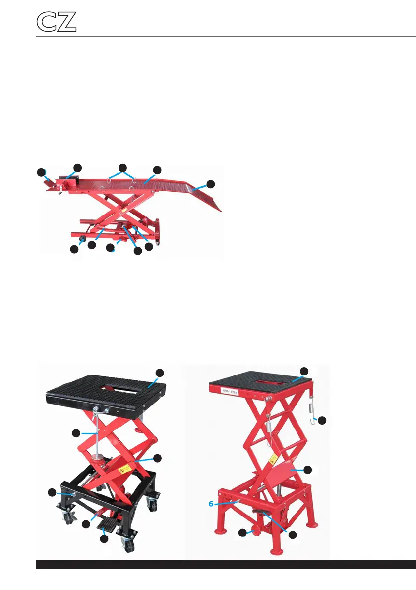 Před použim se ujistěte, že hmotnost a velikost motocyklu nepřekročí jmenovitou nosnost zvedáku.