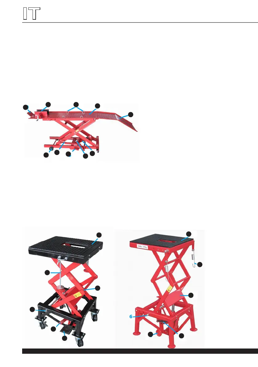 È proibito utilizzare il cric o la piattaforma per il trasporto di oggetti. L'apparecchiatura è predisposta
