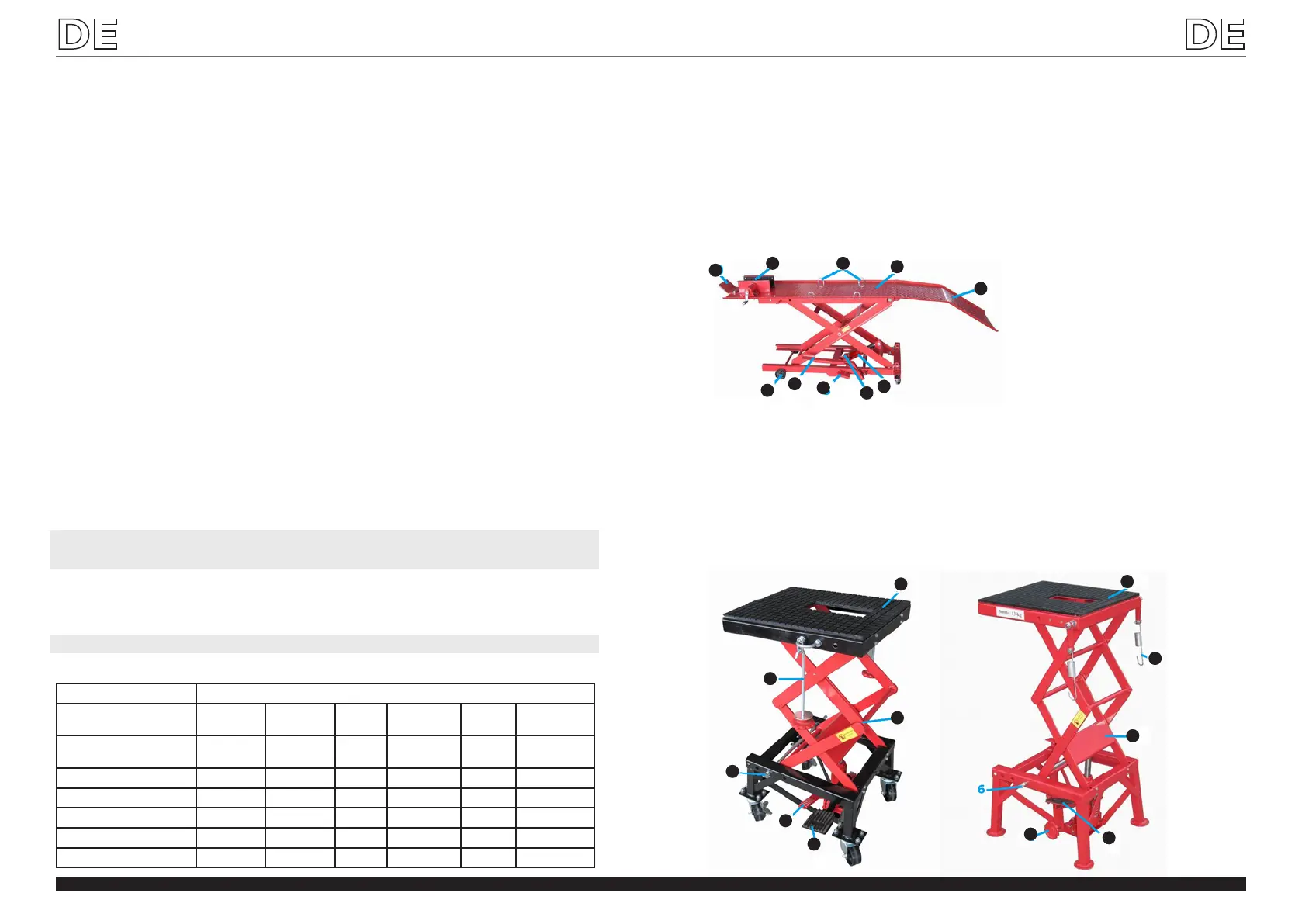 Der Motorradheber dient ausschließlich zum Anheben von Motorrädern. Eine Verwendung zu anderen