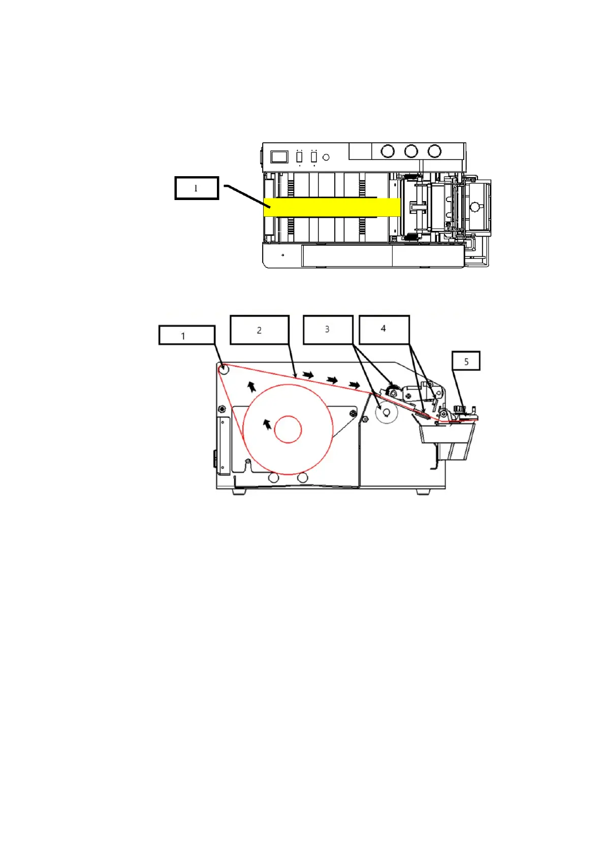 und fädeln Sie das Papierband wie in Abbildung 4-6 gezeigt ein.Beachten Sie, dass die