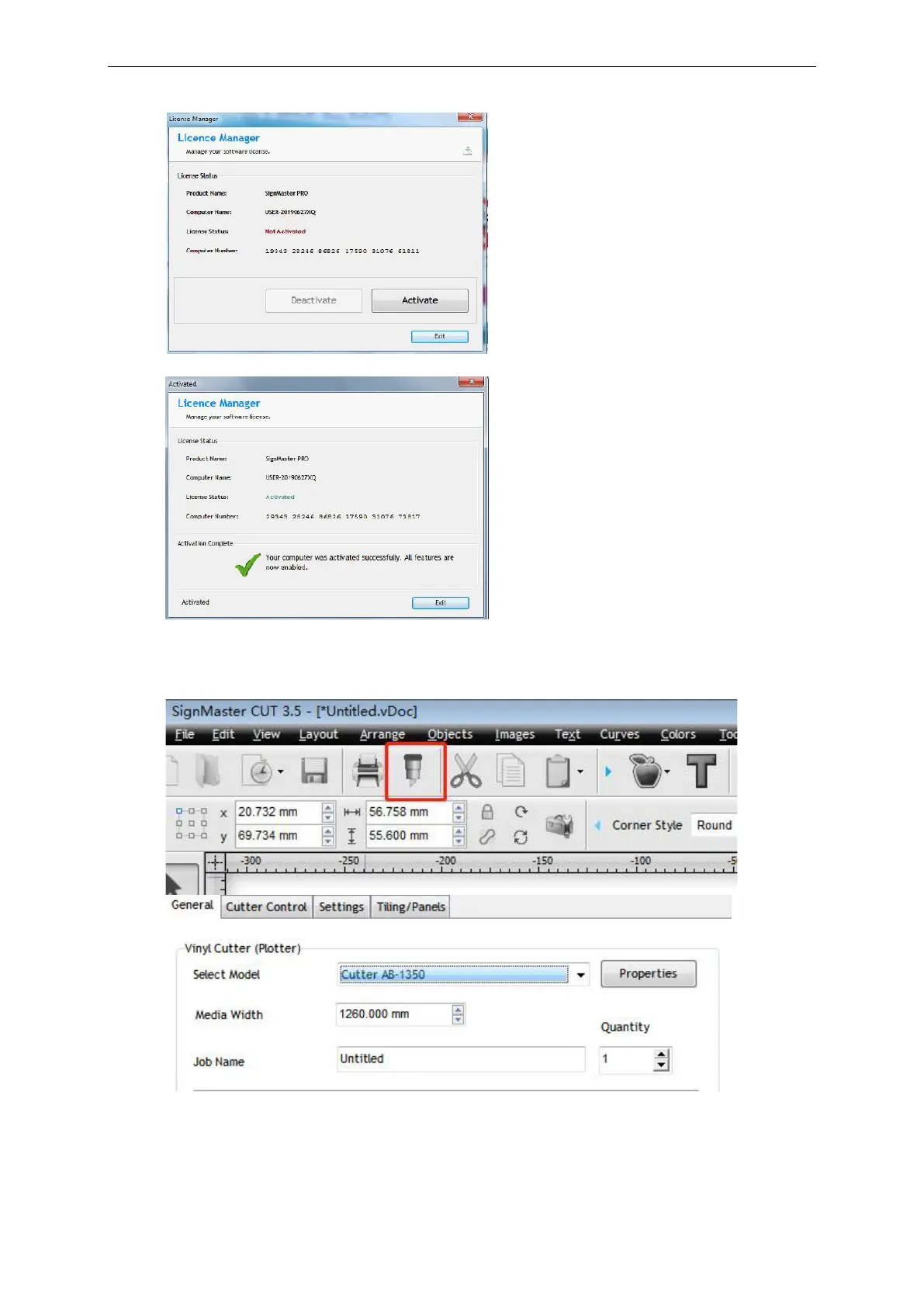 Schneideplotter senden“. Klicken Sie auf das unten markierte Cutter-Symbol: