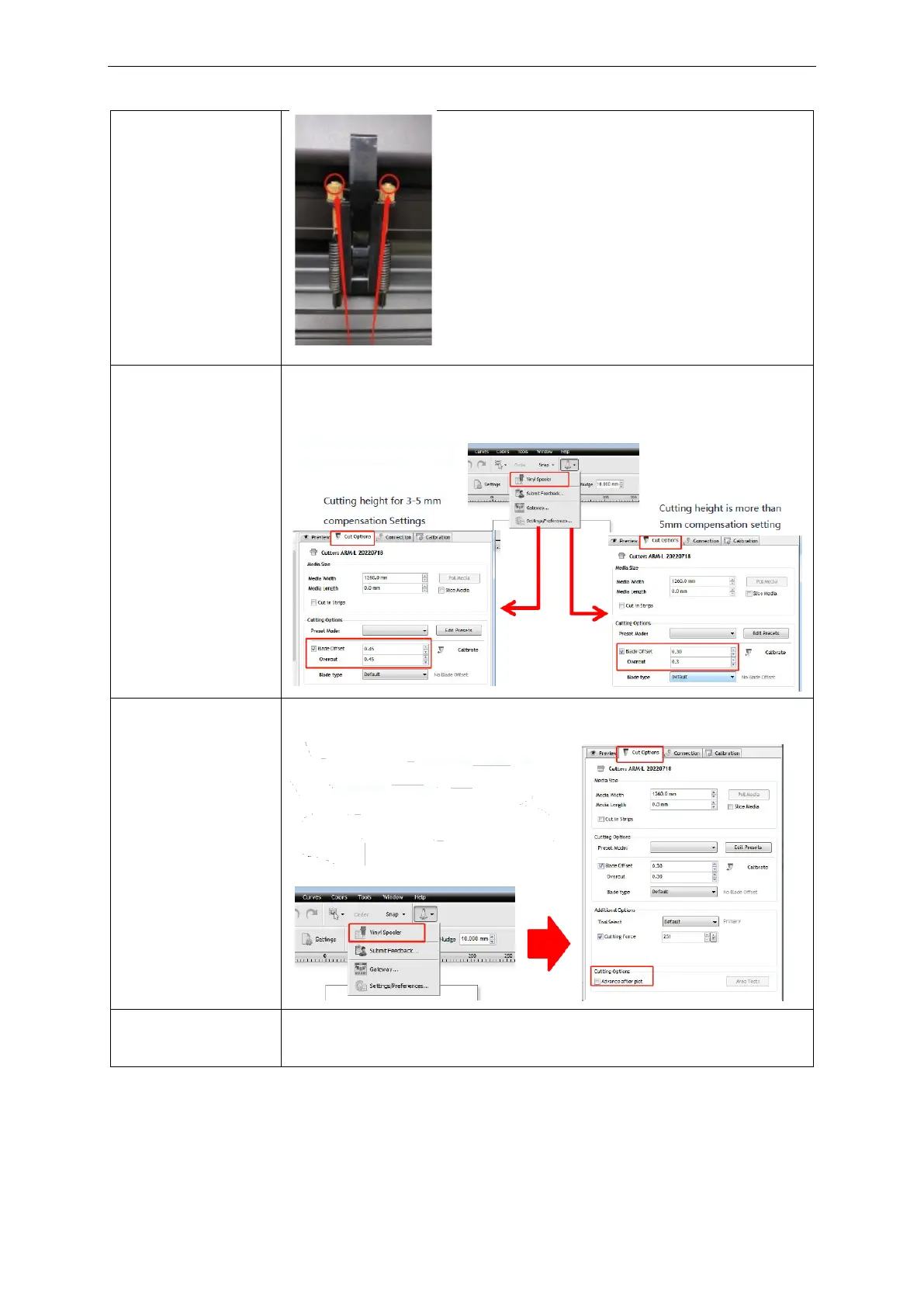 Gdy wysokość cięcia liter wynosi 3-5 mm, wartość kompensacji programowej