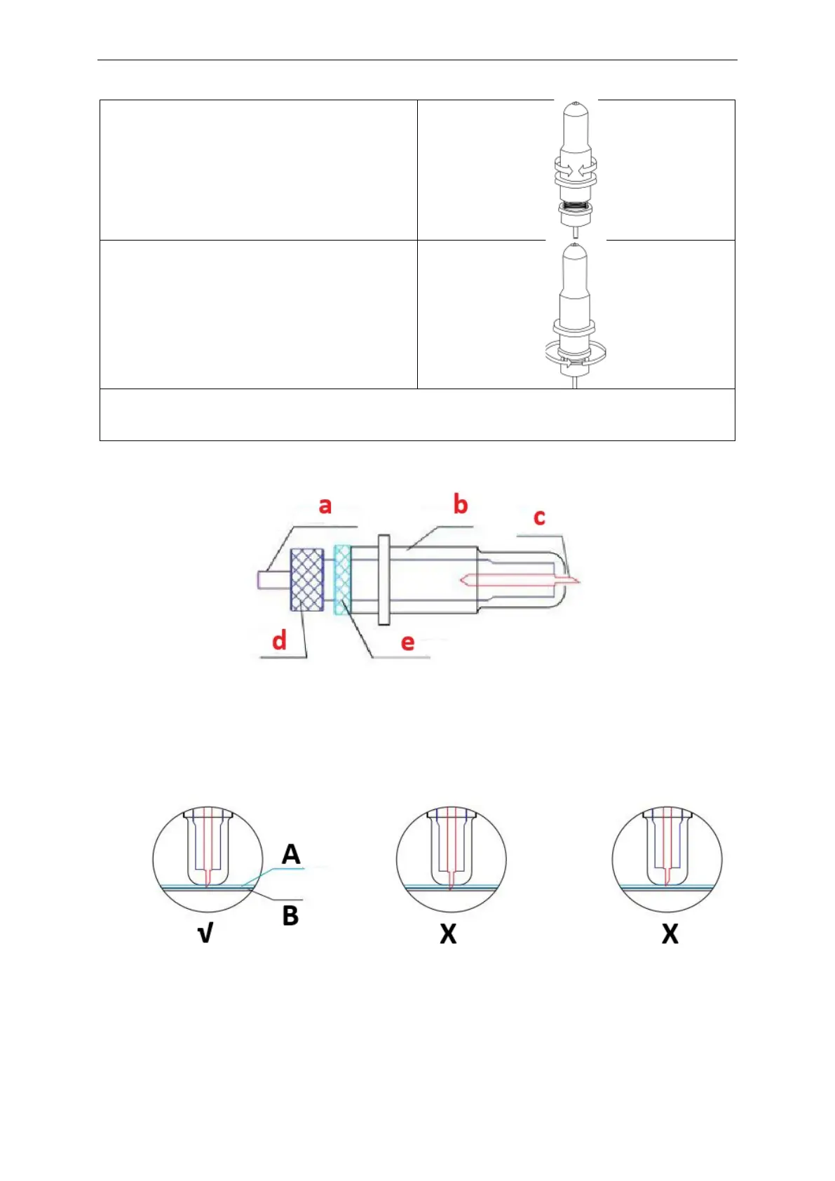 X) Gauche – pointe de la lame trop longue ; droite – pointe de la lame trop courte