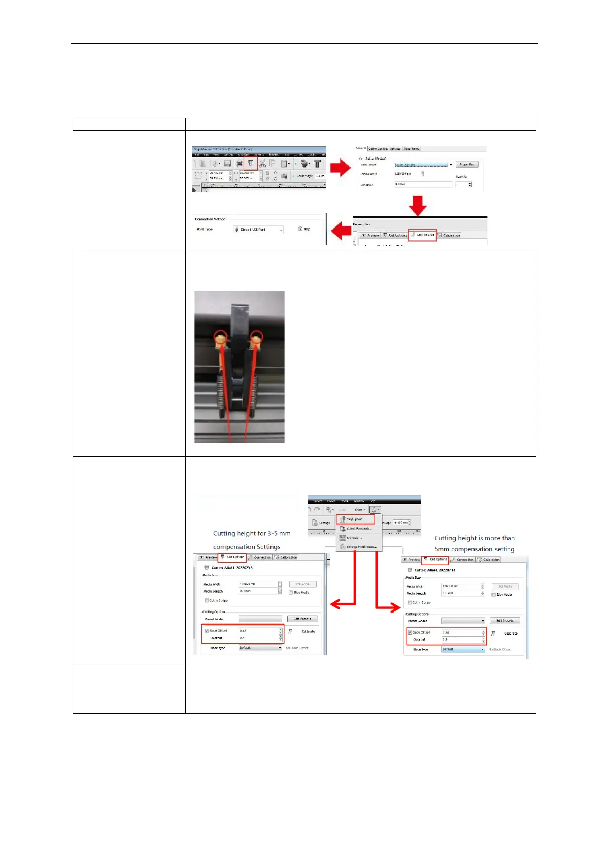 Ha a vágási magasság 3-5 mm-es betűk, a szoftveres kompenzáció értéke 0,45, a